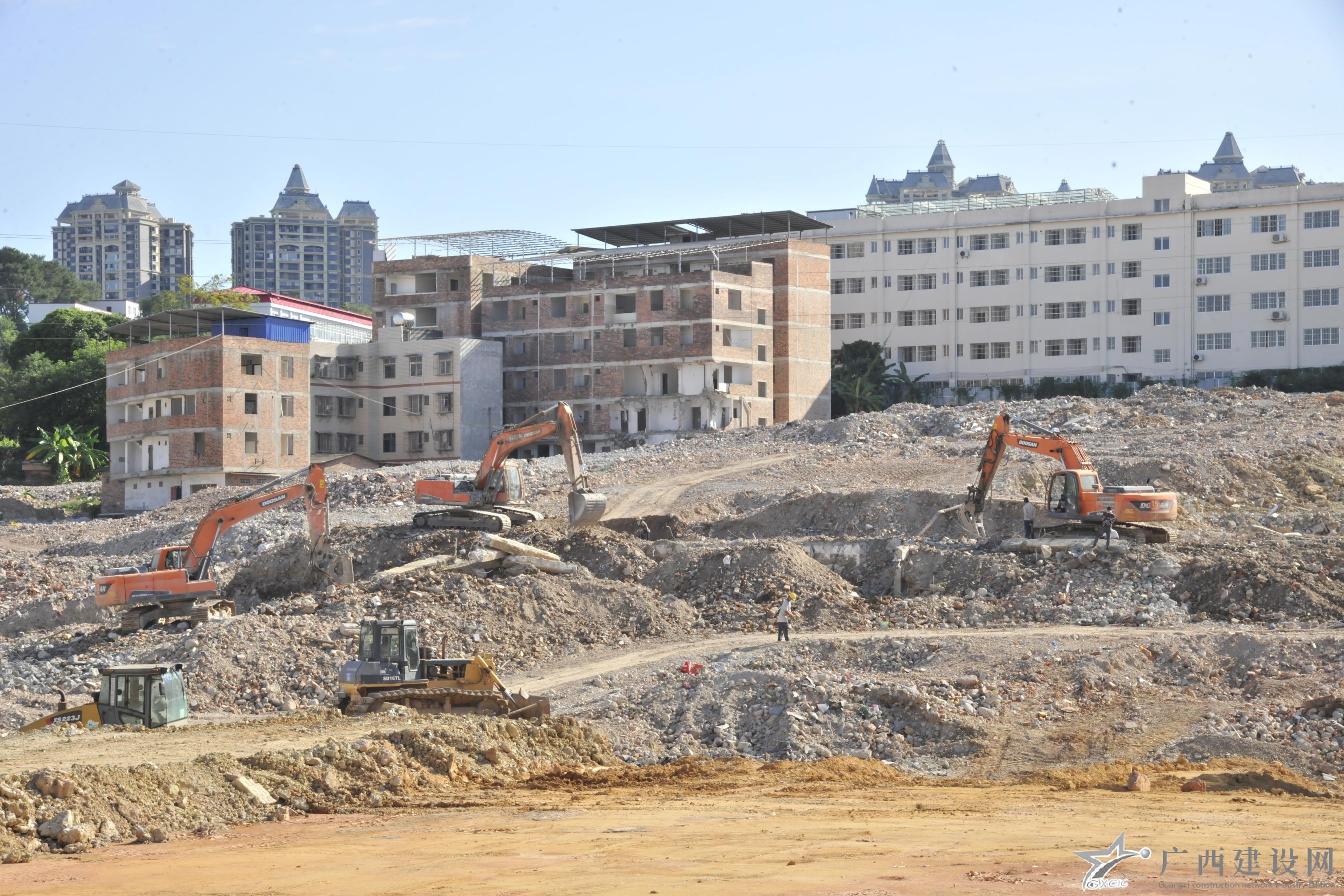 南寧市長堽村五組城中村改造項目挖掘機在作業。余宴/攝