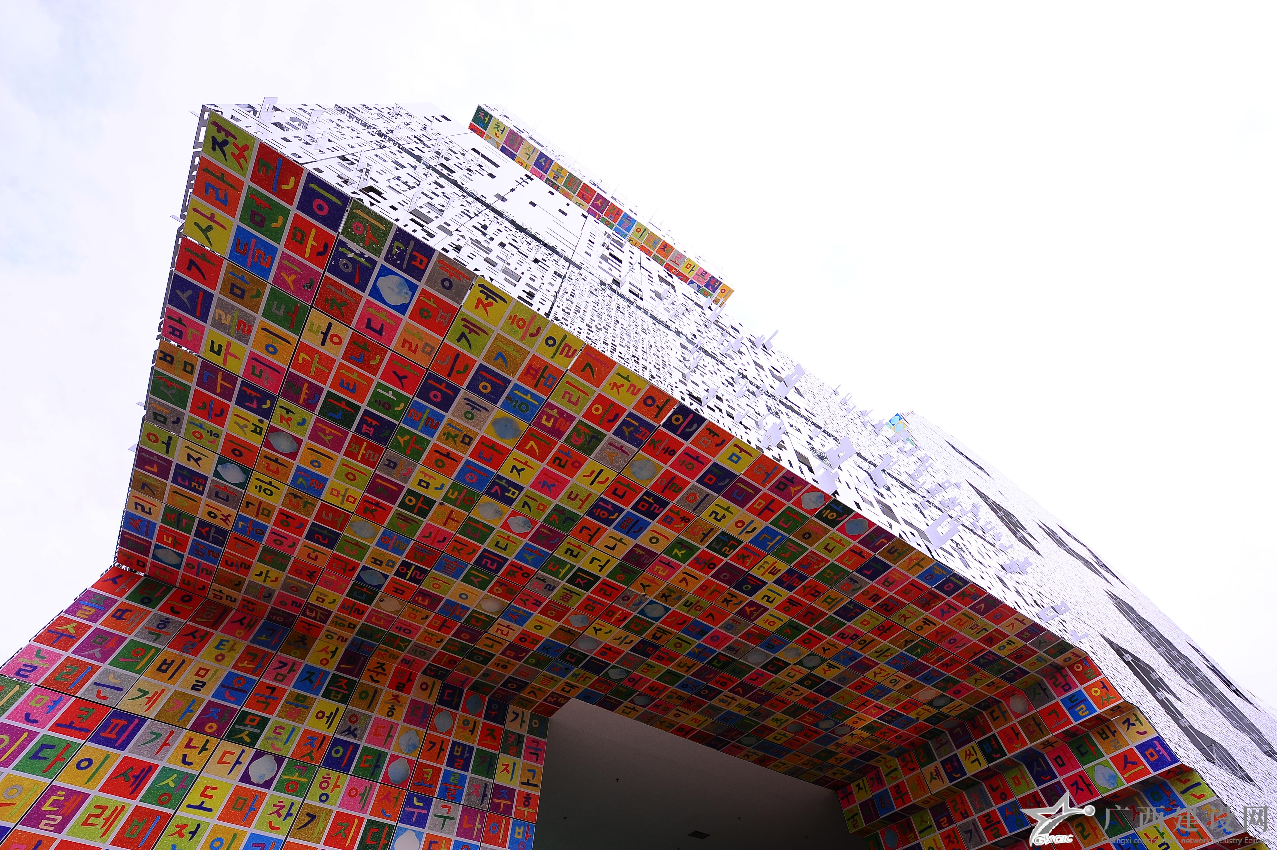 中國2010年上海世博會韓國國家館,位于世博園A片區,國家館由于使用韓文字母構筑,其底層的絕大部分為開放空間,也就是說沒有門,以充分體現韓國的開放性和包容性。展館底層地面,鋪設了不同色彩的地磚。據介紹,色彩斑斕的地面其實是韓國首都首爾地圖,這張地圖為首爾實際面積的1/300。濃縮的首爾移植到了上海,其嶄新的符號化空間,為上海與首爾之間的直接交流建立起一個全新的平臺。