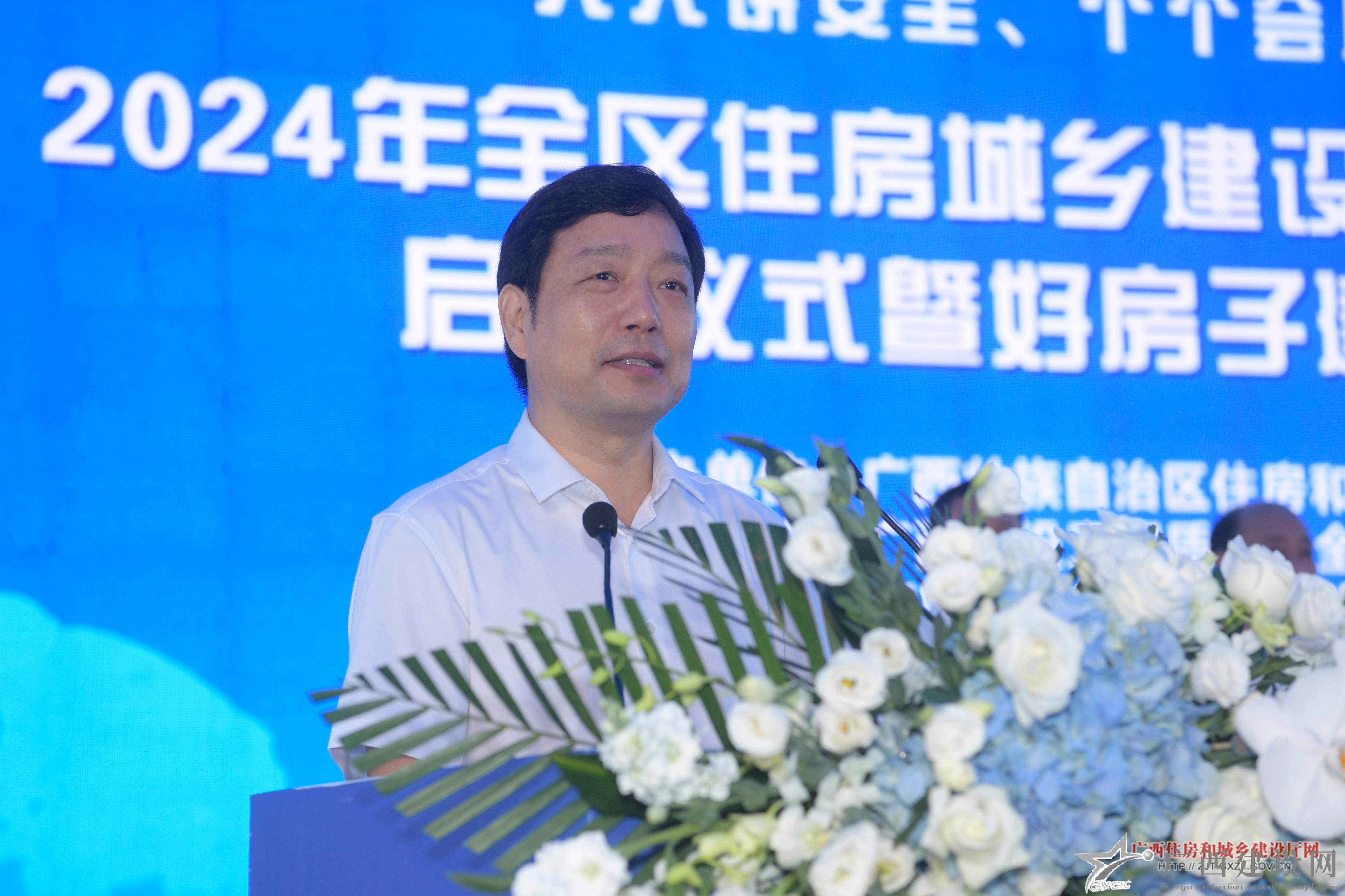 6月5日,2024年全區住房城鄉建設系統“安全生產月”活動啟動儀式暨“好房子”建設樣板現場觀摩會在南寧舉辦。自治區住房城鄉建設廳黨組書記、廳長楊綠峰出席啟動儀式并宣布2024年全區住房城鄉建設系統“安全生產月”活動正式啟動,廳黨組成員、副廳長黎旭標出席啟動儀式;南寧市副市長李建文出席活動。