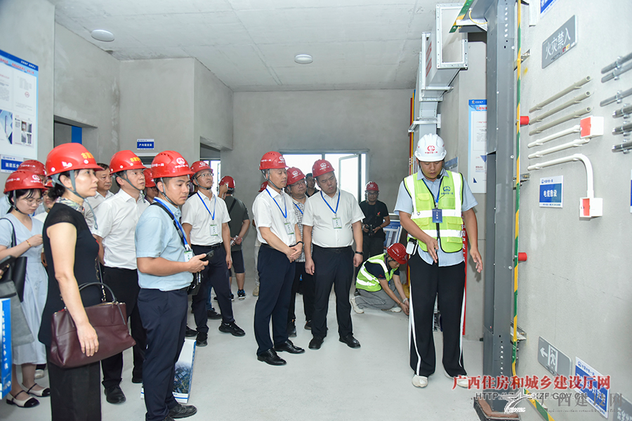 在南寧市廣西建設(shè)職業(yè)技術(shù)學(xué)院新校區(qū)項(xiàng)目和桂林市交投·和順江畔項(xiàng)目現(xiàn)場(chǎng),以圖文展板、實(shí)物展示、視頻演示等形式,分層次、分步驟展現(xiàn)部分施工環(huán)節(jié)的工藝流程和數(shù)字化建造過(guò)程,以及科學(xué)合理的動(dòng)態(tài)管理模式。與會(huì)代表深入施工一線邊走邊看,圍繞工程項(xiàng)目智能化建造、標(biāo)準(zhǔn)化樣板、先進(jìn)技術(shù)工藝等方面開(kāi)展觀摩交流。