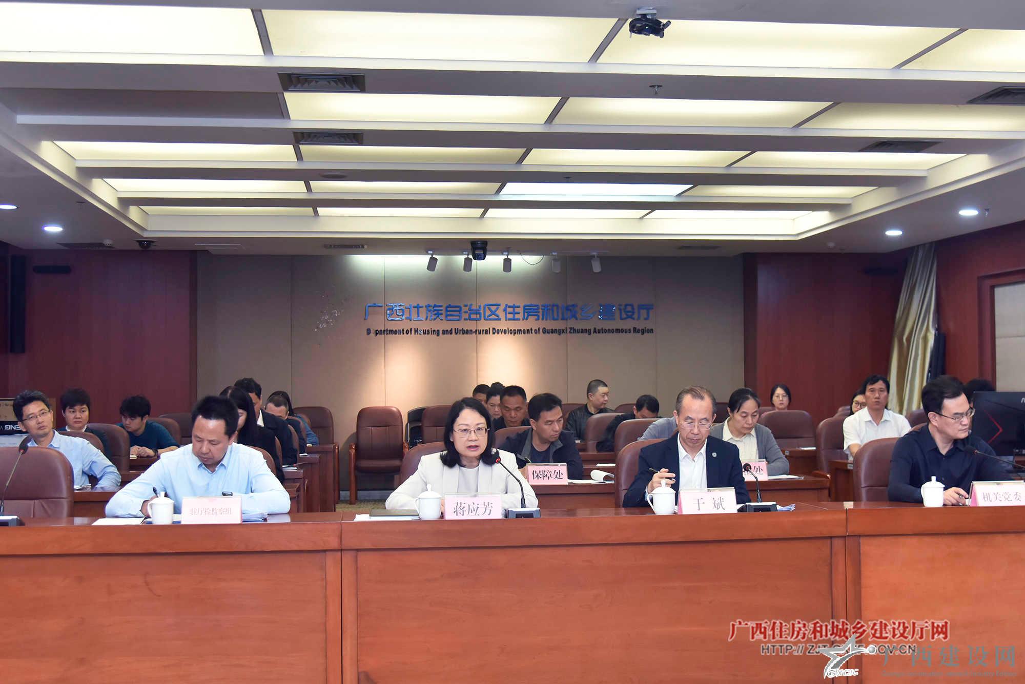 自治區(qū)住房城鄉(xiāng)建設(shè)廳黨組成員、駐廳紀(jì)檢監(jiān)察組組長(zhǎng)蔣應(yīng)芳(左二),廳黨組成員、副廳長(zhǎng)于斌(右二)參加會(huì)議