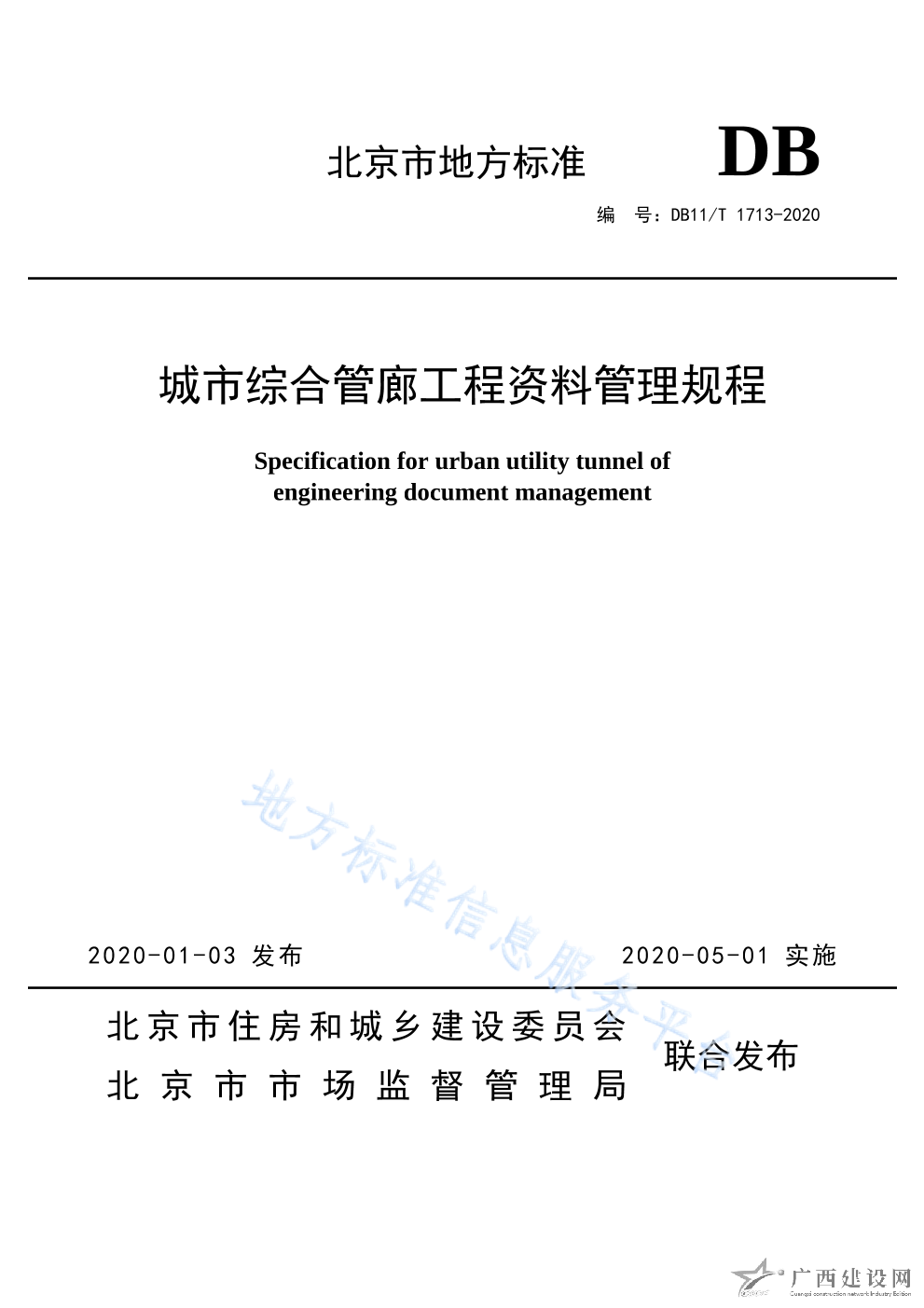 DB11 T+1713-2020城市綜合管廊工程資料管理規(guī)程
