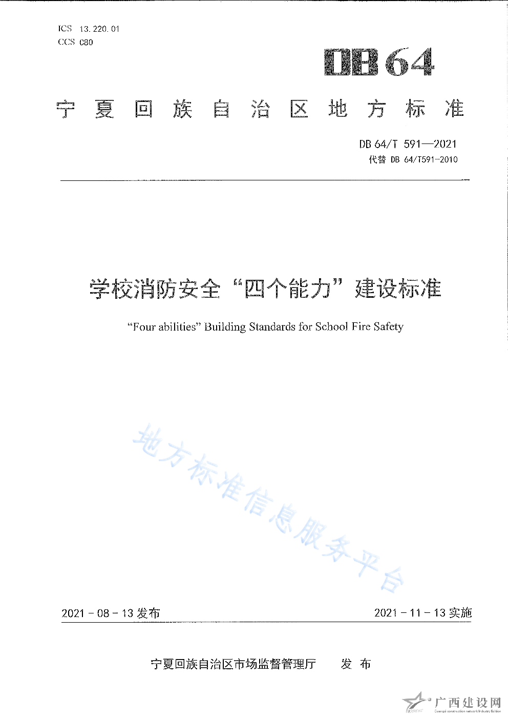 DB64 591-2021學(xué)校消防安全“四個(gè)能力”建設(shè)標(biāo)準(zhǔn)