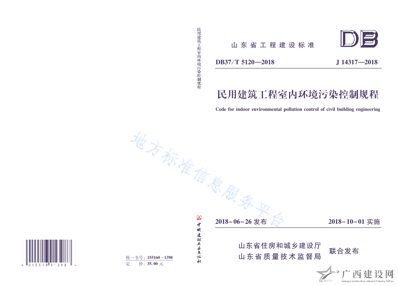 DB37 T5120-2018民用建筑工程室內(nèi)環(huán)境污染控制規(guī)程