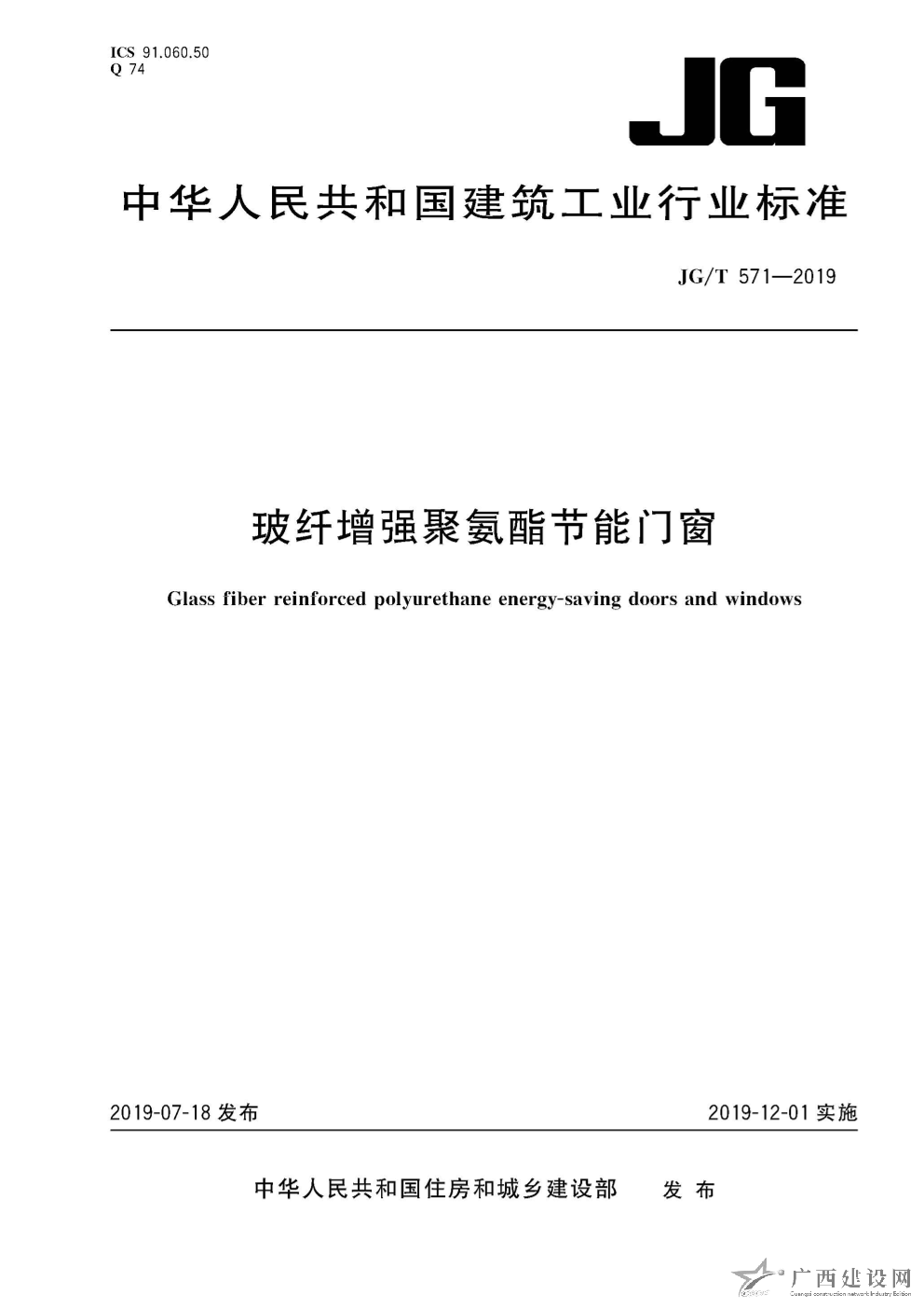 JGT 571-2019 玻纖增強(qiáng)聚氨酯節(jié)能門窗
