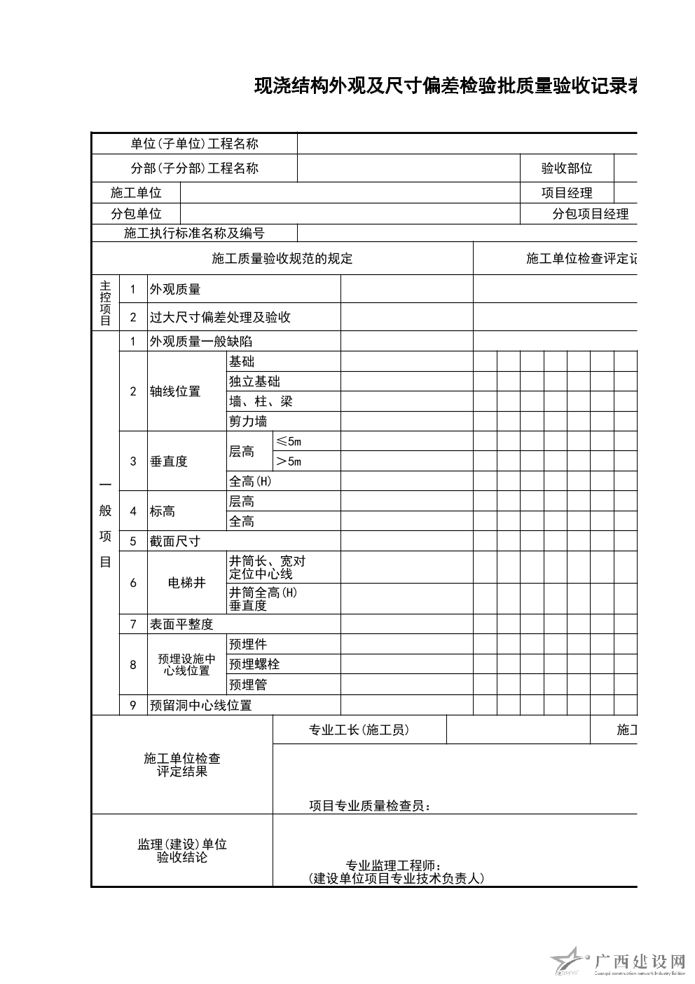 現(xiàn)澆結構外觀及尺寸偏差檢驗批1
