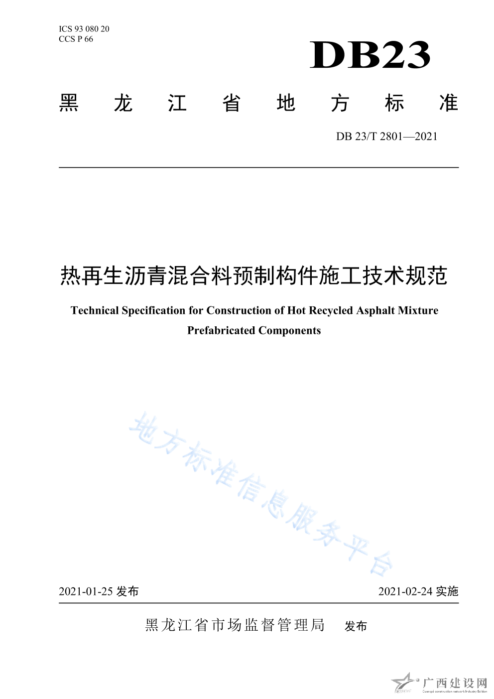 DB23 T 2801—2021熱再生瀝青混合料預制構件施工技術規范