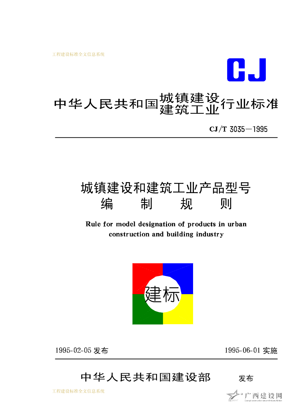 城鎮建設和建筑工業產品型號編制規則 CJ/T3035-1995