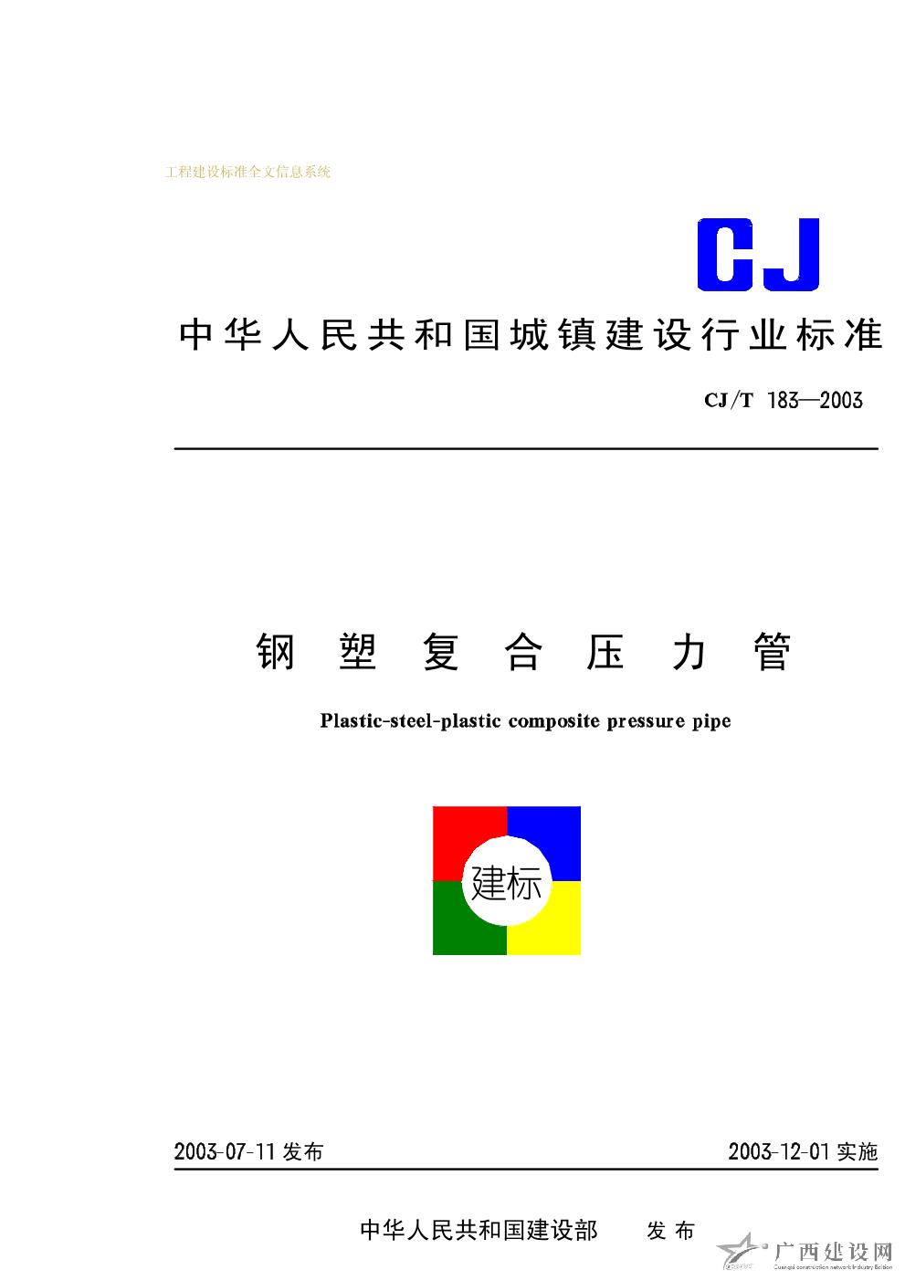 鋼塑復(fù)合壓力管 CJ/T183-2003