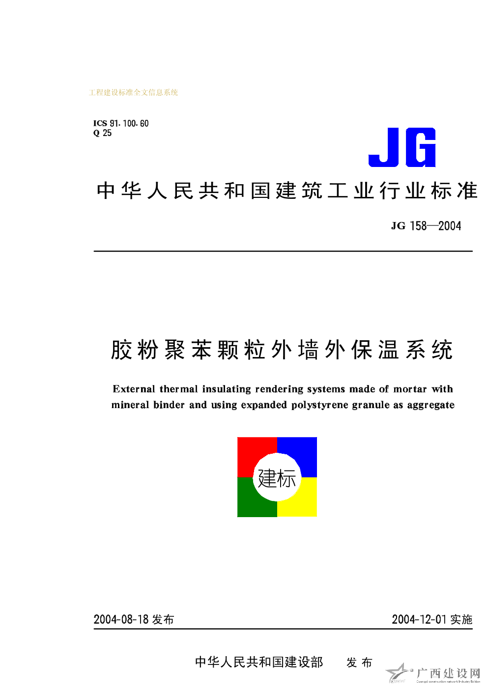 膠粉聚苯顆粒外墻外保溫系統 JG158-2004