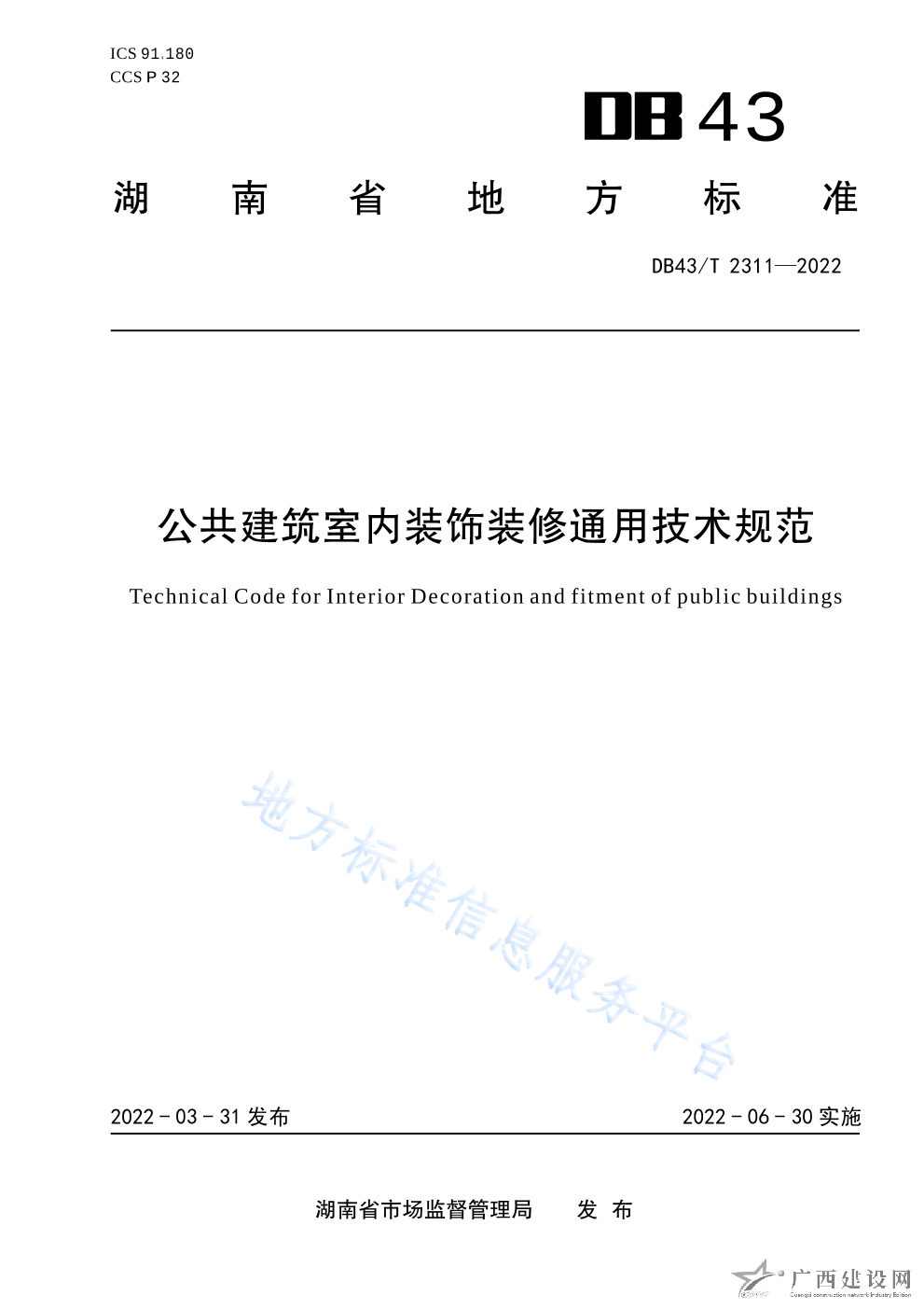 DB43 T2311-2022公共建筑室內裝飾裝修通用技術規范