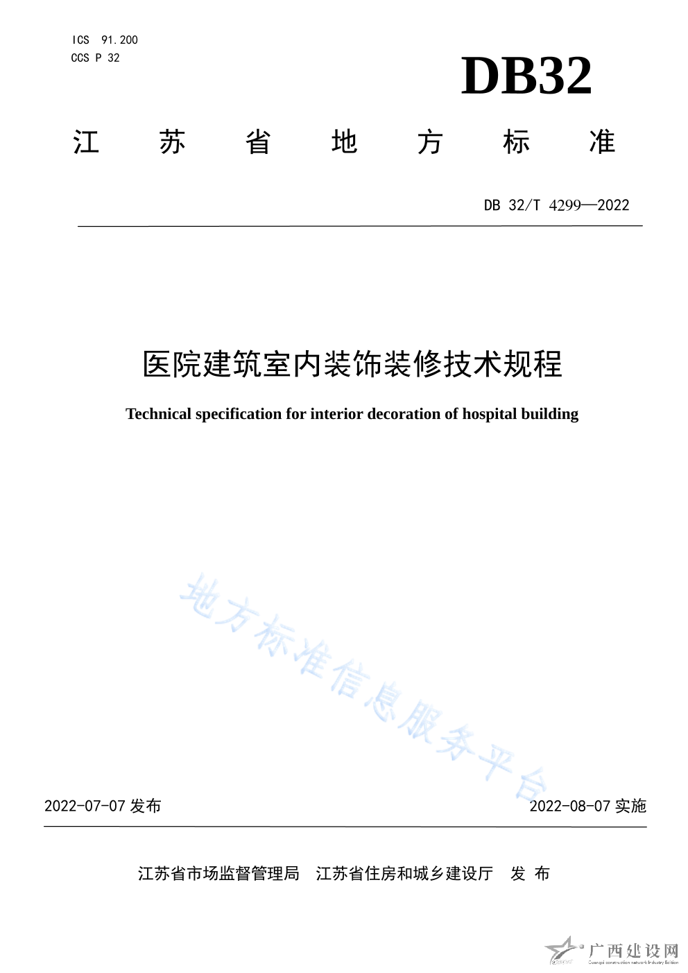 DB32 T4299-2022醫院建筑室內裝飾裝修技術規程