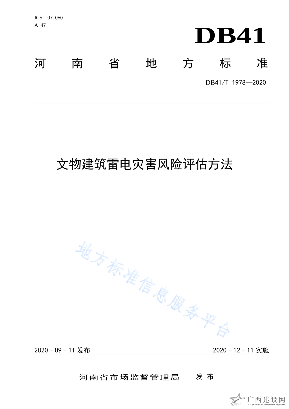 DB41 T1978-2020文物建筑雷電災(zāi)害風(fēng)險評估方法