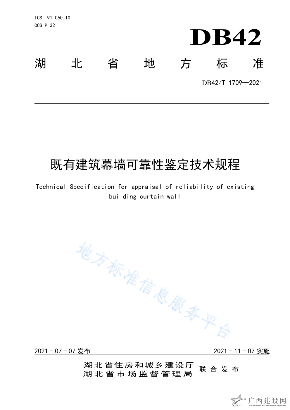 DB42 T1709-2021既有建筑幕墻可靠性鑒定技術(shù)規(guī)程