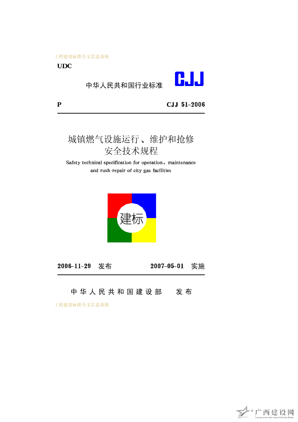 城鎮燃氣設施運行、維護和搶修安全技術規程 CJJ51-2006