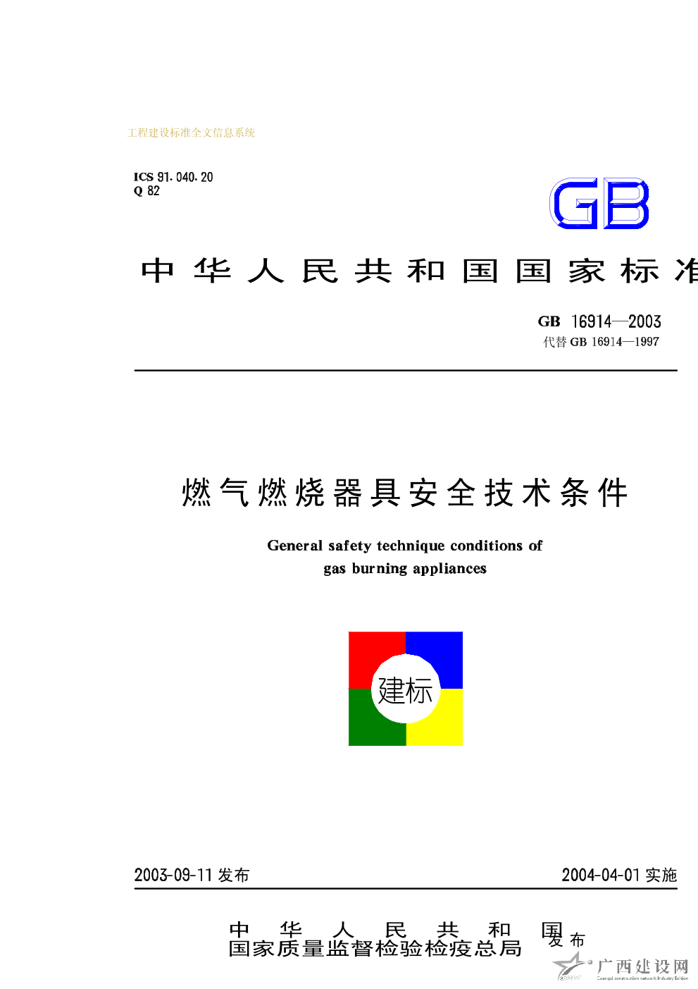 燃氣燃燒器具安全技術條件 GB16914-2003