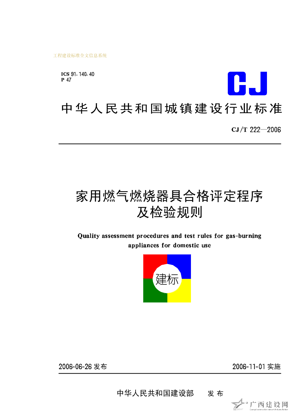 家用燃氣燃燒器具合格評定程序及檢驗規則 CJ/T222-2006