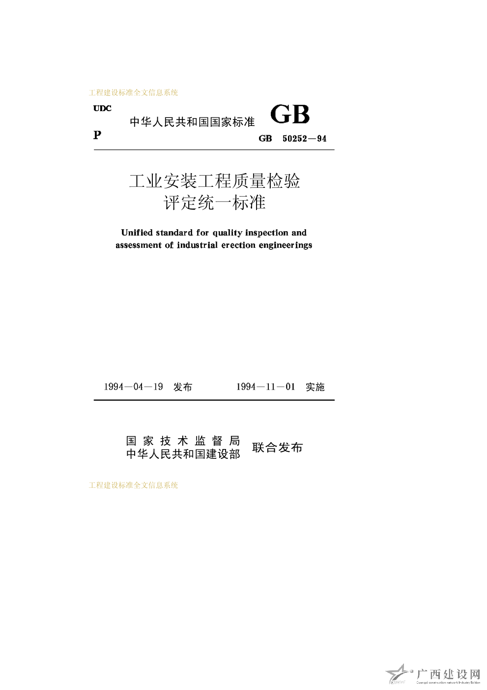 工業(yè)安裝工程質(zhì)量檢驗(yàn)評定統(tǒng)一標(biāo)準(zhǔn) GB50252-94