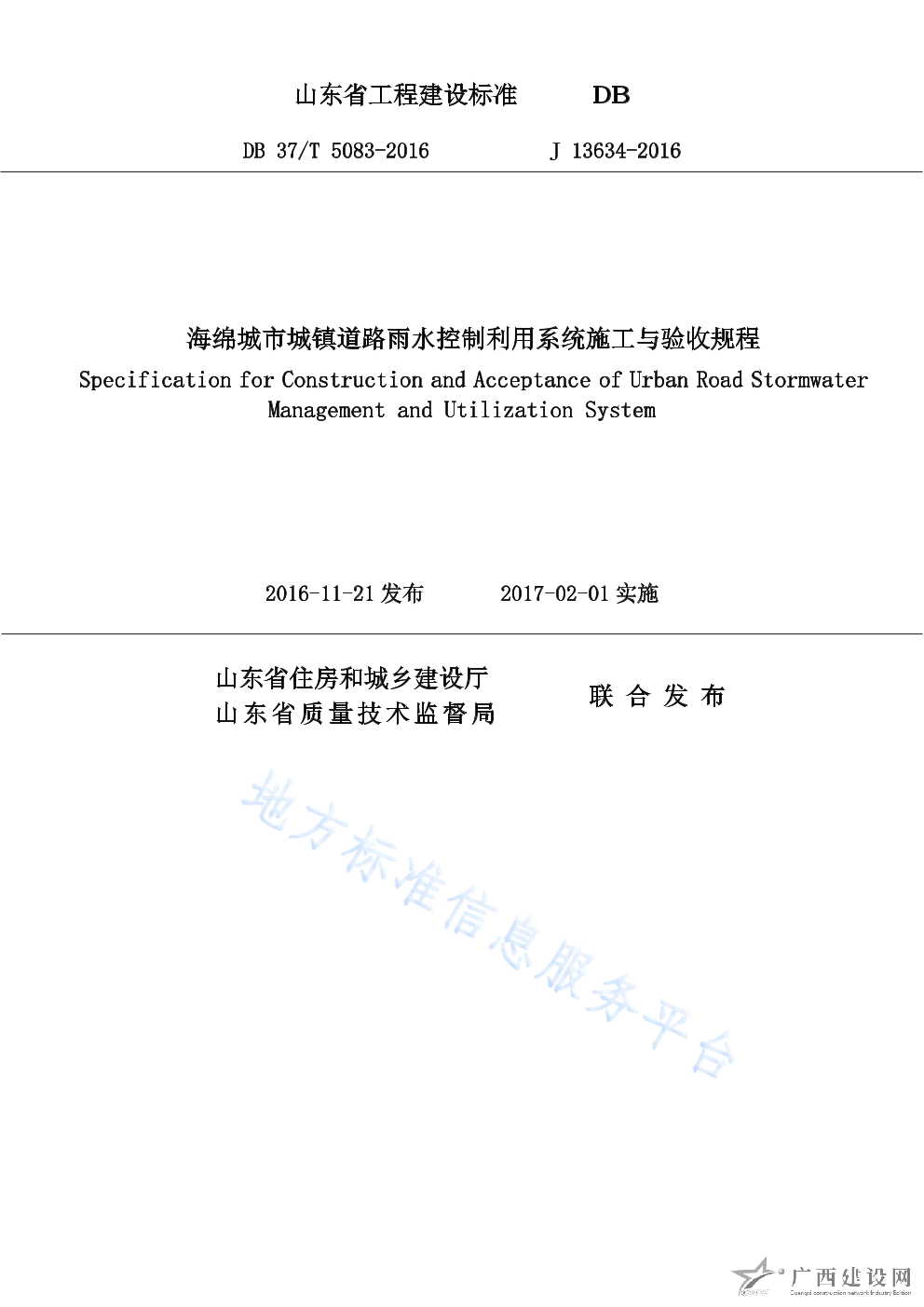 DB37 T5083-2016海綿城市城鎮(zhèn)道路雨水控制利用系統(tǒng)施工與驗(yàn)收規(guī)程