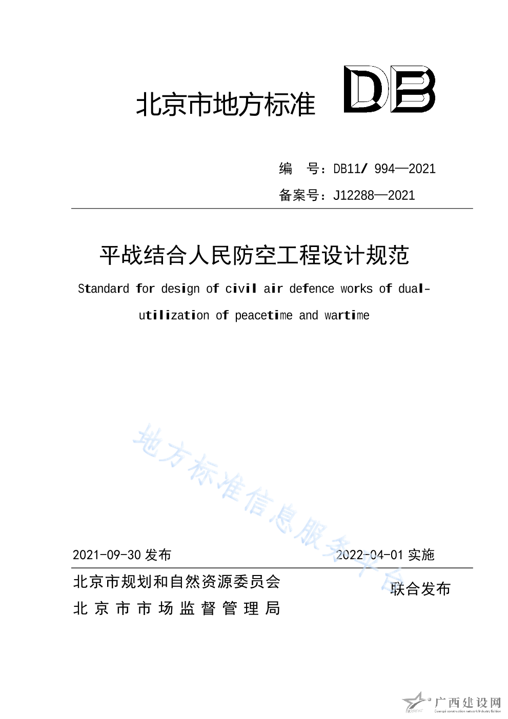 DB11 994-2021平戰(zhàn)結(jié)合人民防空工程設(shè)計(jì)規(guī)范