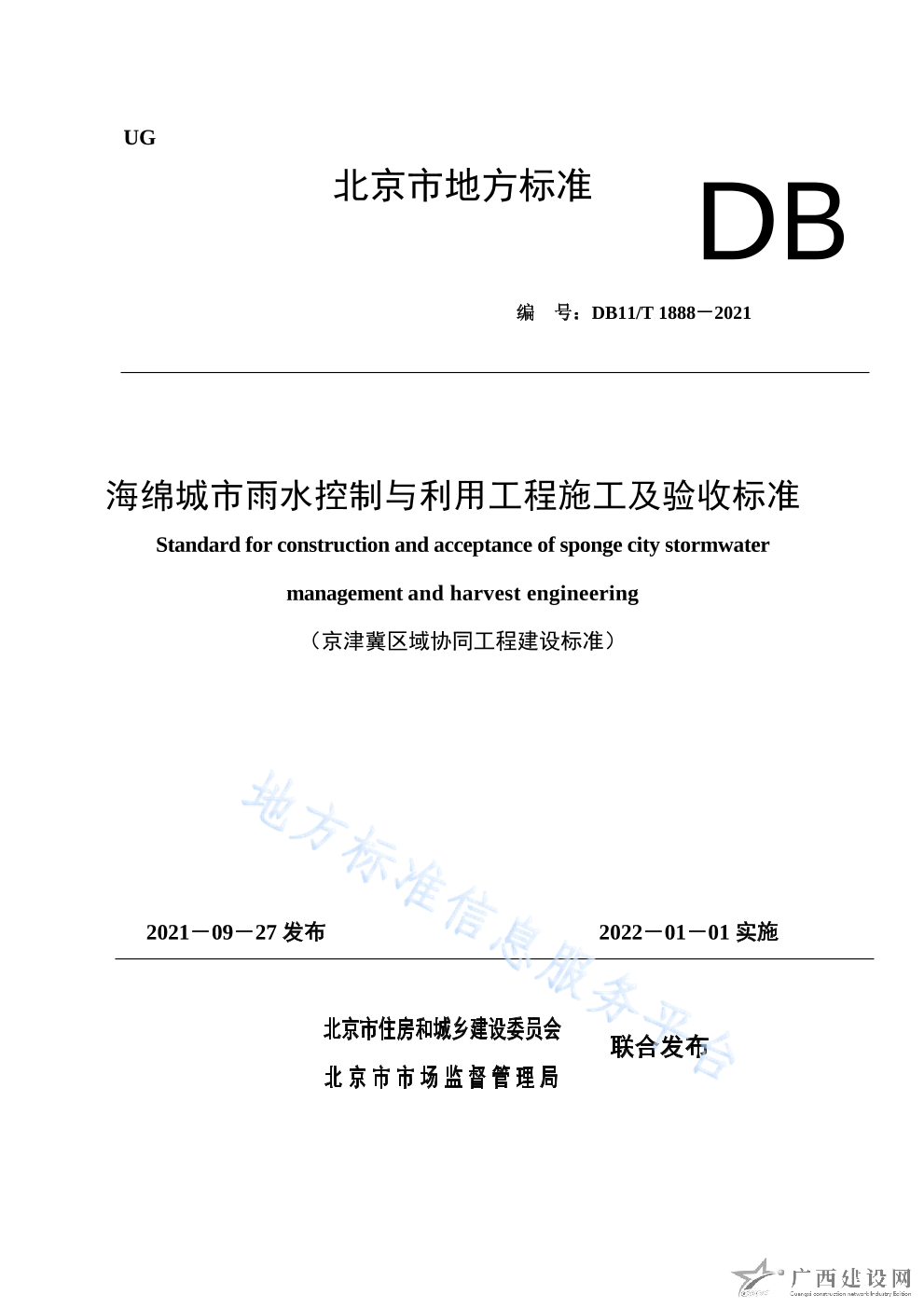 DB11 T+1888-2021海綿城市雨水控制與利用工程施工及驗(yàn)收標(biāo)準(zhǔn)