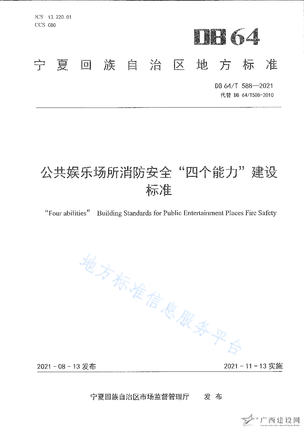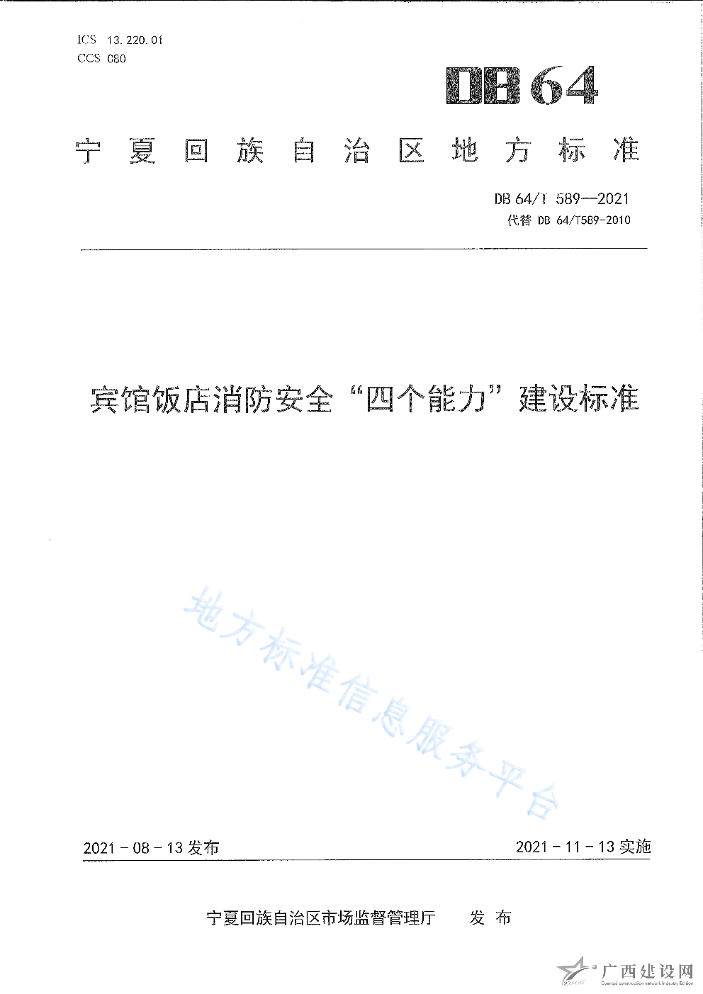 DB64 1772-2021農村消防安全技術標準