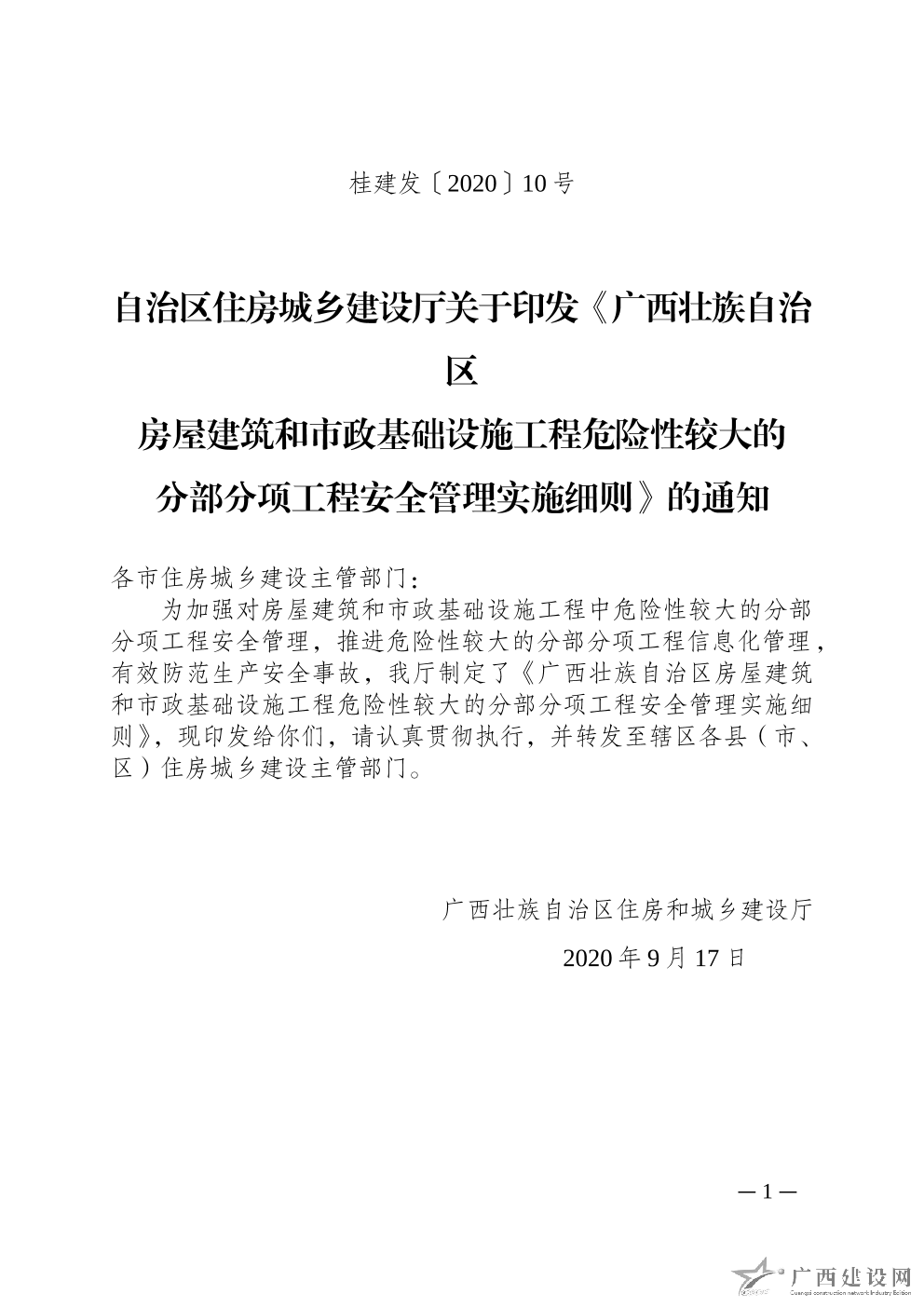 《廣西壯族自治區房屋建筑和市政基礎設施工程質量安全手冊實施細則(試行)》的通知