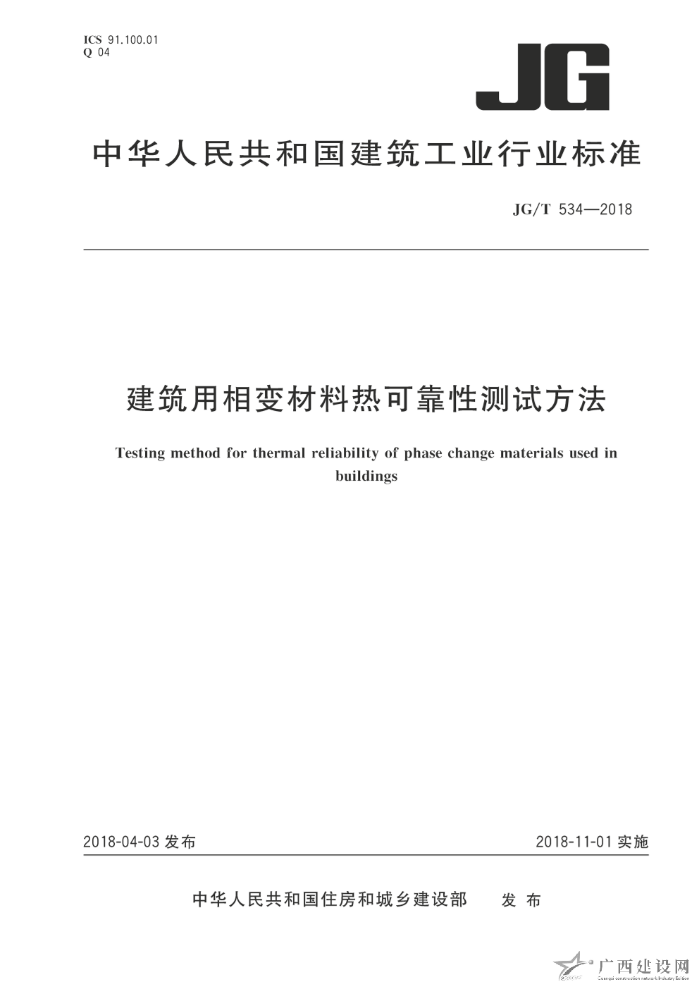 JG-T534-2018:建筑用相變材料熱可靠性測試方法