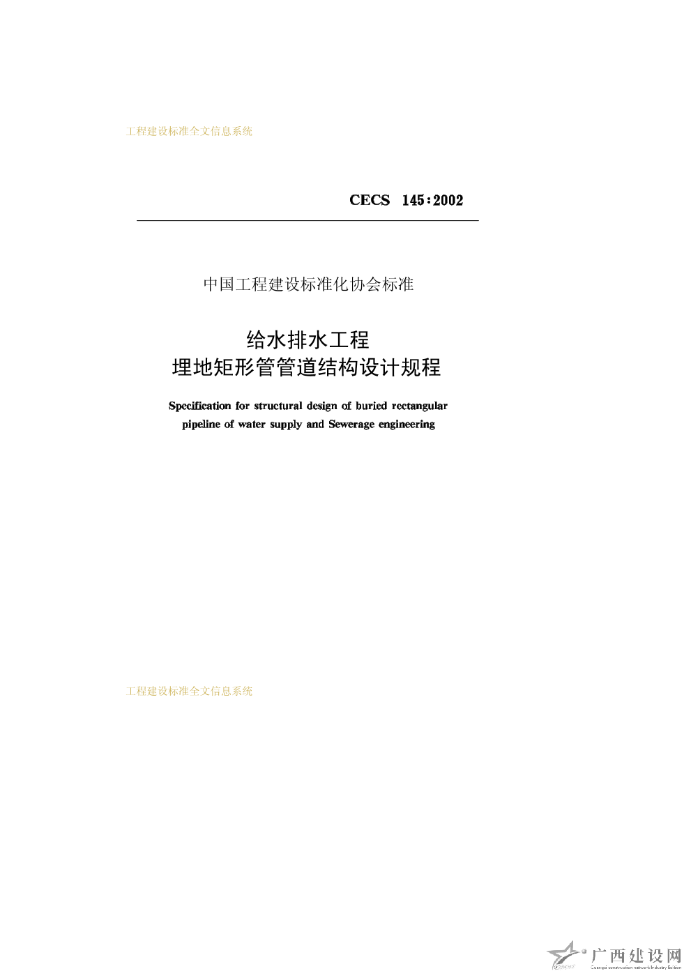 給水排水工程埋地矩形管管道結構設計規程 CECS145