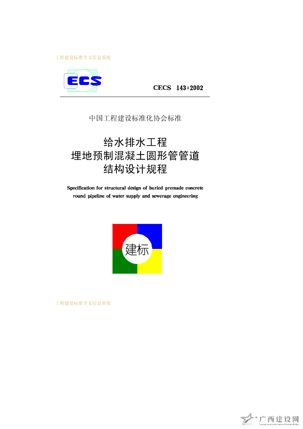 給水排水工程埋地預制混凝土圓形管管道結構設計規程 CECS143