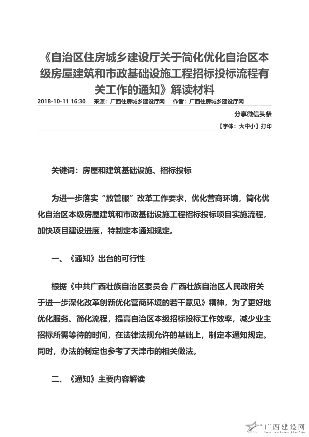 《自治區(qū)住房城鄉(xiāng)建設(shè)廳關(guān)于簡化優(yōu)化自治區(qū)本級房屋建筑和市政基礎(chǔ)設(shè)施工程招標投標流程有關(guān)工作的通知》解讀材料