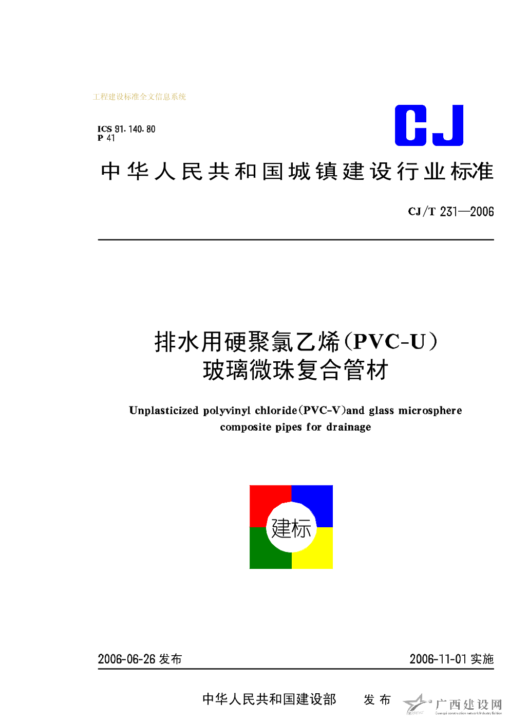 排水用硬聚氯乙烯(PVC-U)玻璃微珠復合管材 CJ/T231-2006