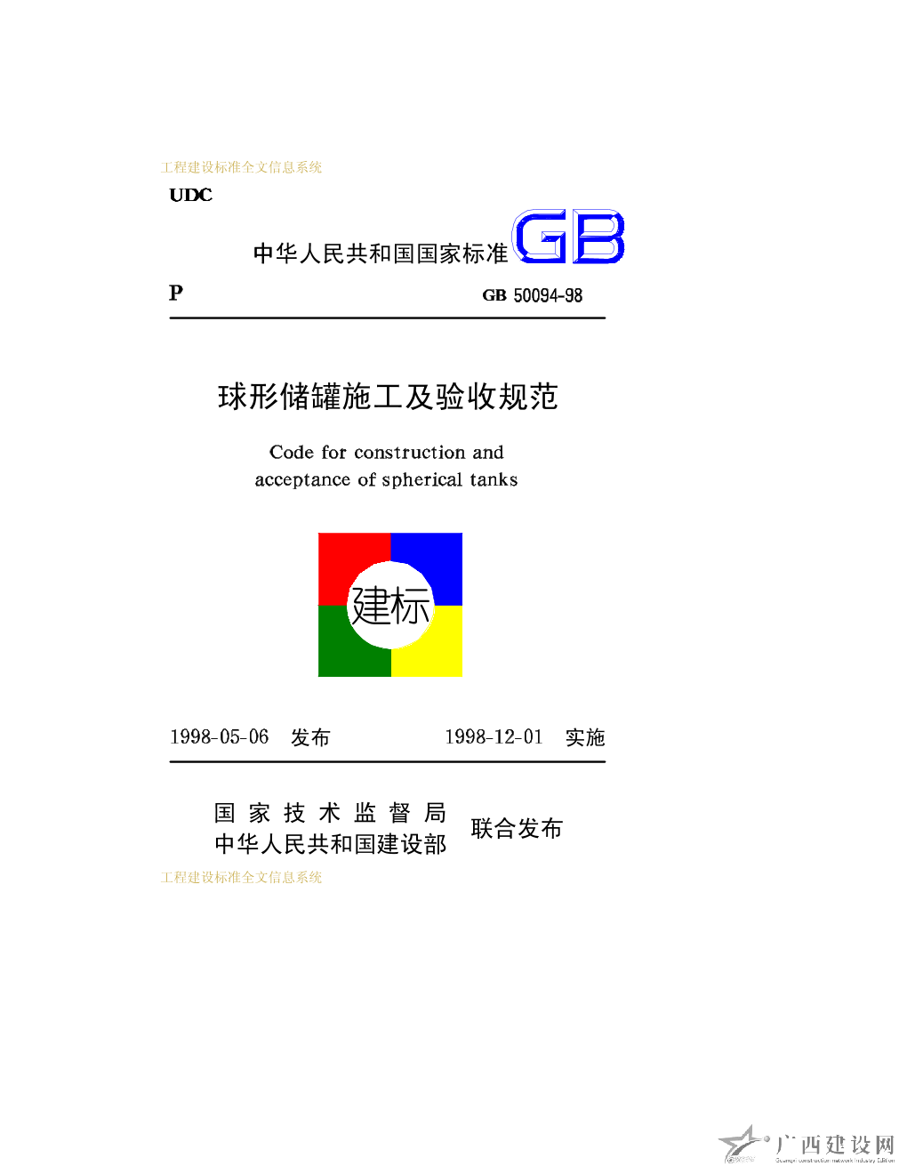 球形儲罐施工及驗收規范 GB50094-98