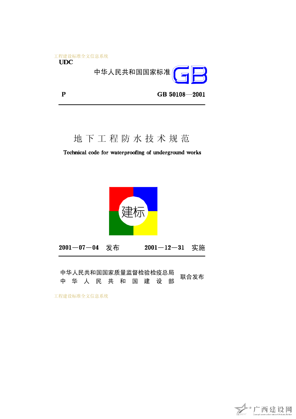 地下工程防水技術(shù)規(guī)范 GB50108-2001