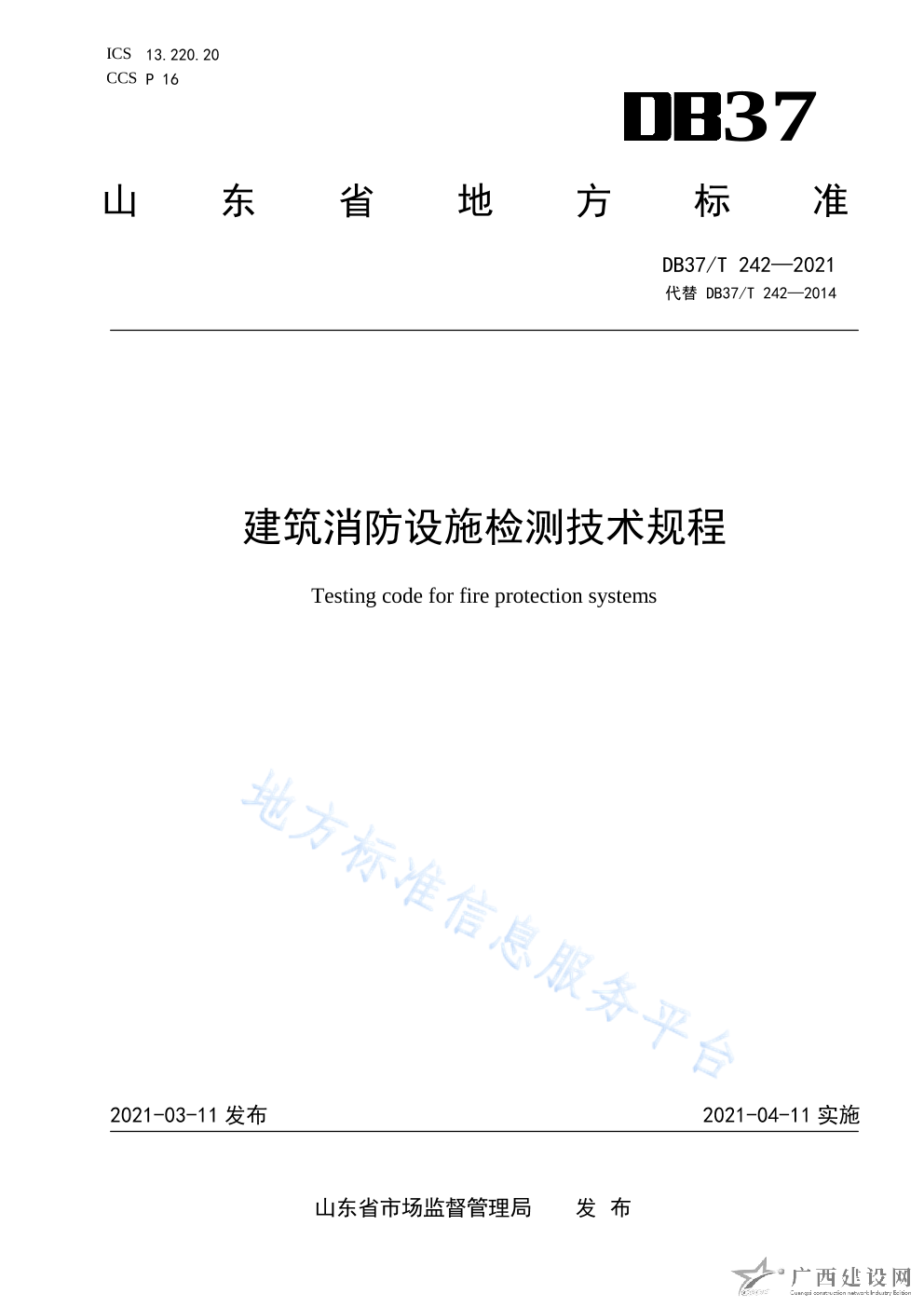 DB37 T242—2021建筑消防設施檢測技術規程