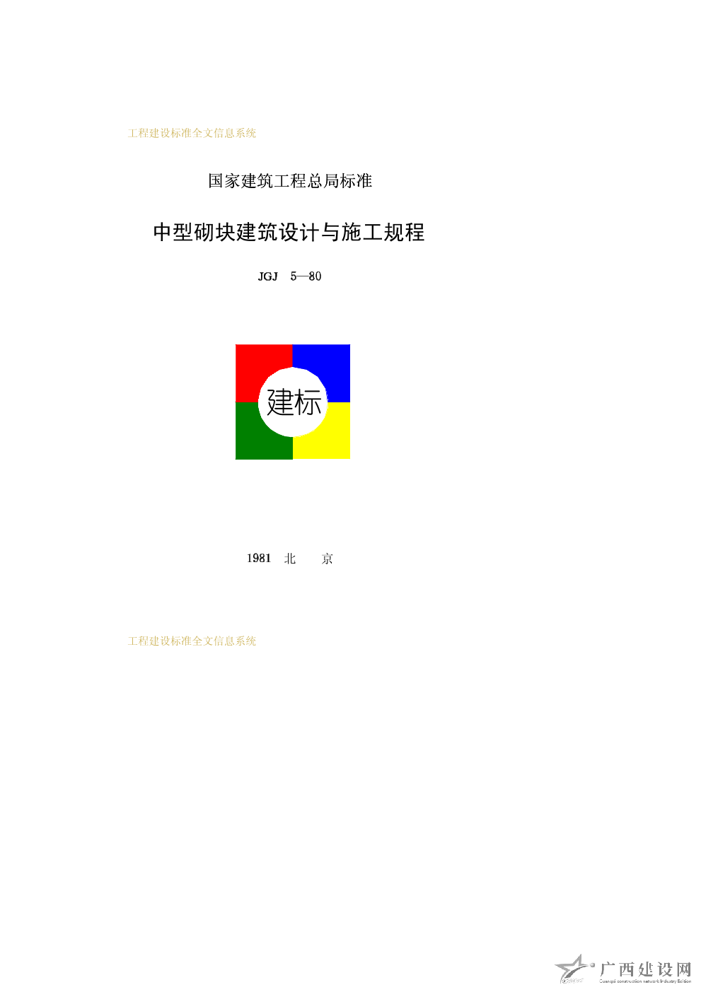 中型砌塊建筑設計與施工規程 JGJ5—80