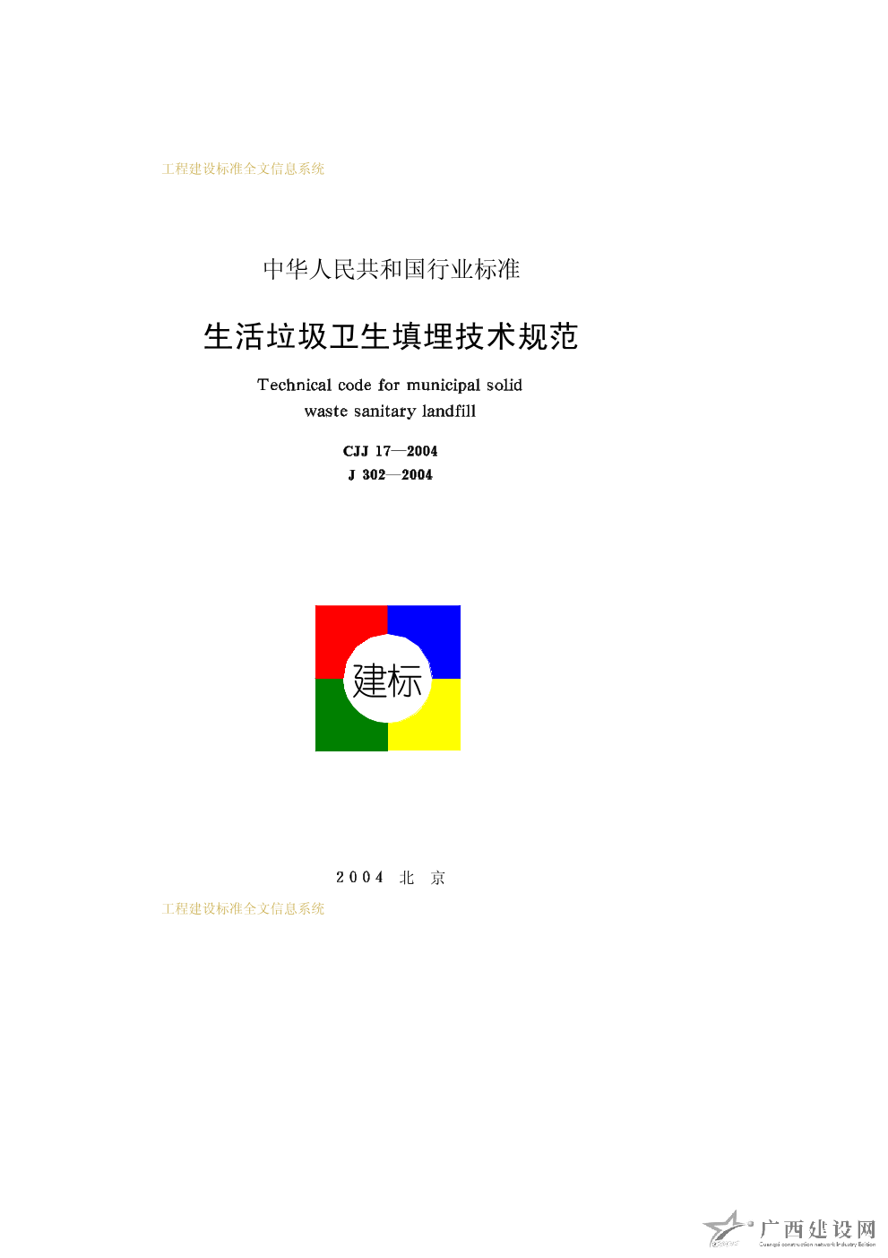 生活垃圾衛(wèi)生填埋技術(shù)規(guī)范 CJJ17-2004