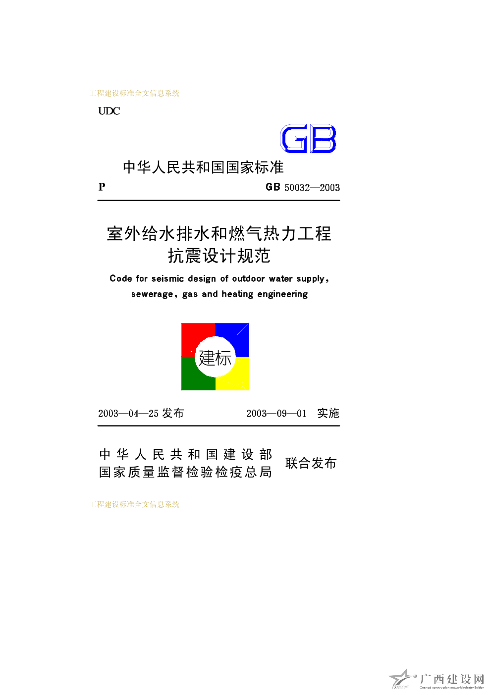 室外給水排水和燃氣熱力工程抗震設計規范 GB50032-2003