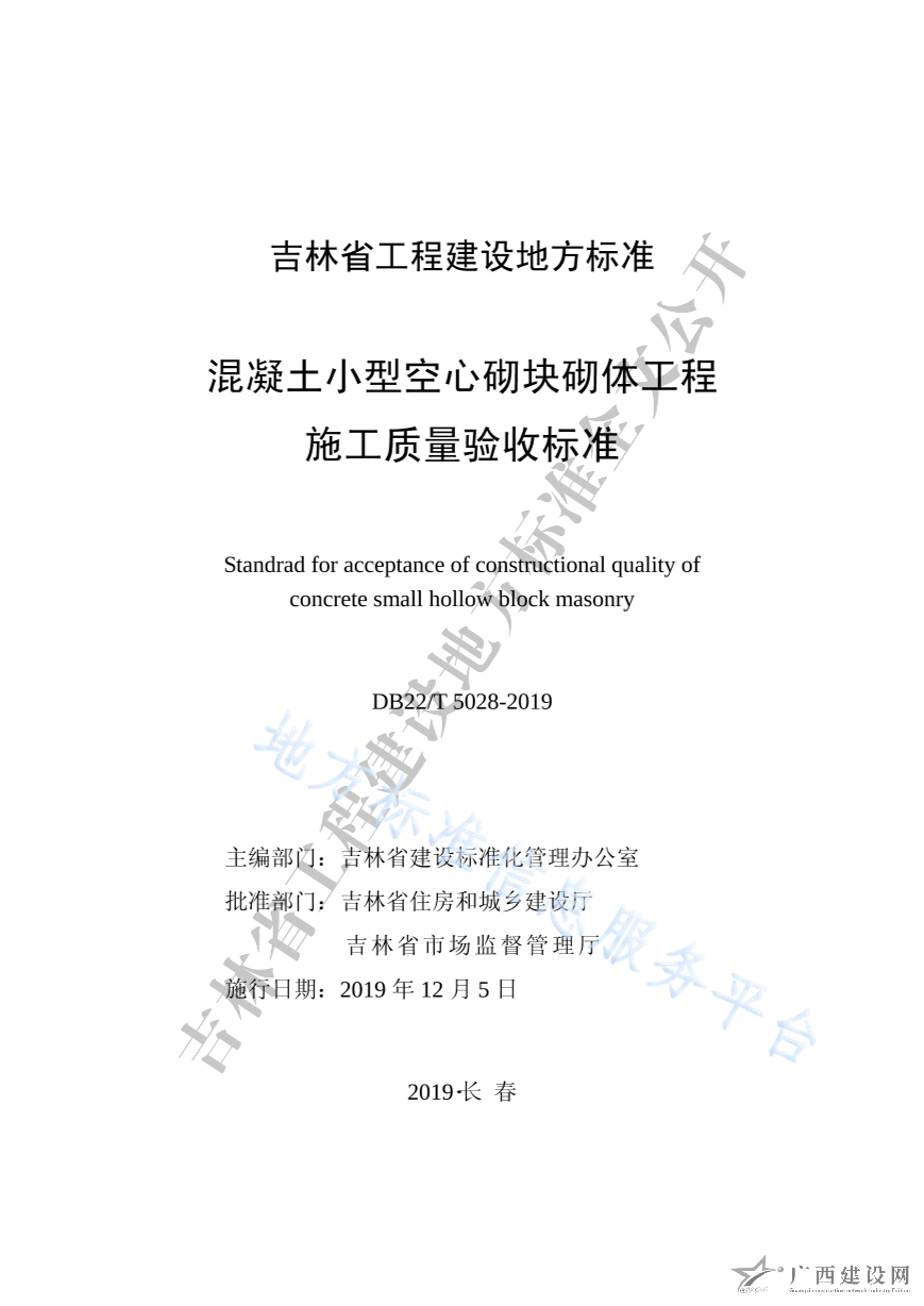 DB22 5027-2019混凝土小型空心砌塊砌體工程施工技術標準