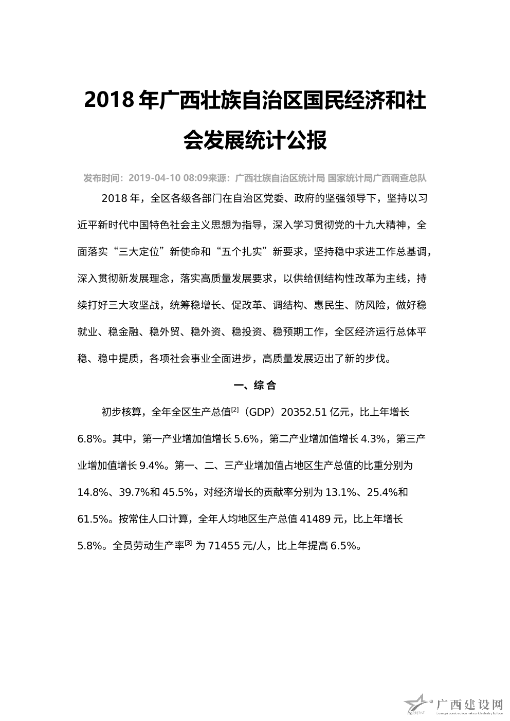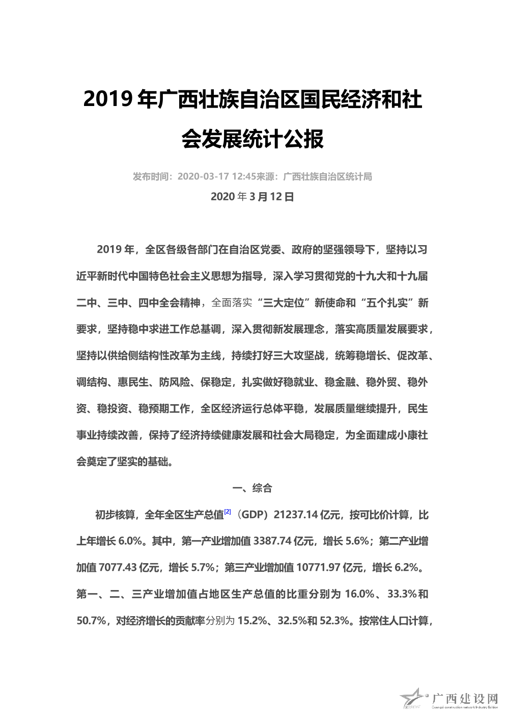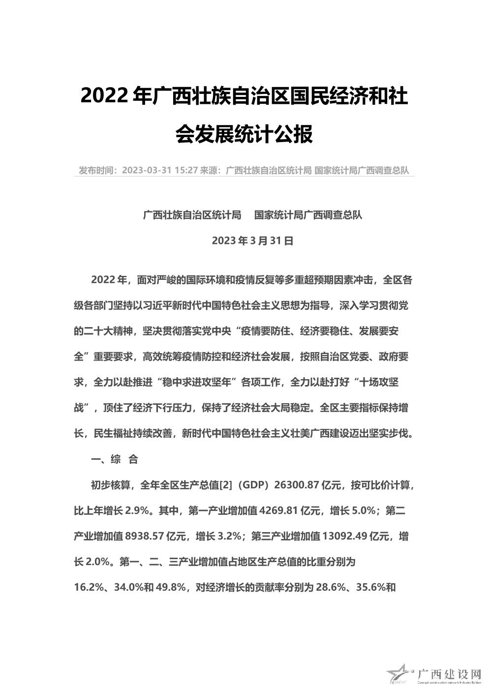2021年廣西壯族自治區(qū)國民經濟和社會發(fā)展統(tǒng)計公報