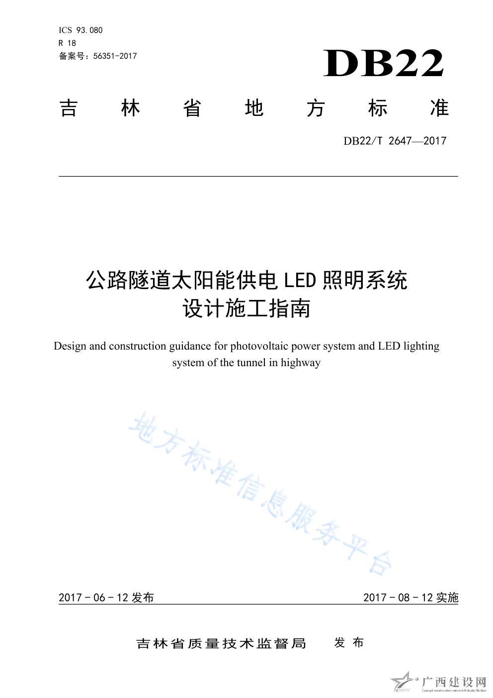 DB22 T2647-2017公路隧道太陽(yáng)能供電LED照明系統(tǒng)設(shè)計(jì)施工指南