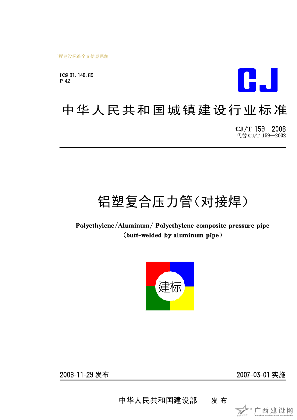 鋁塑復合壓力管(對接焊) CJ/T159-2006