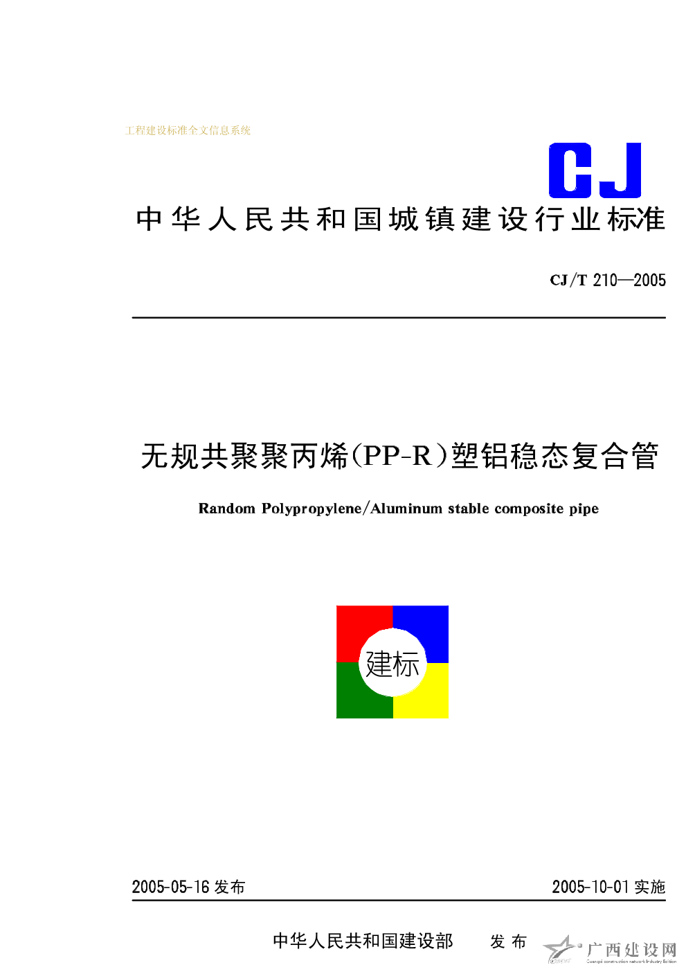 無規共聚聚丙烯(PP-R)塑鋁穩態復合管 CJ/T210-2005