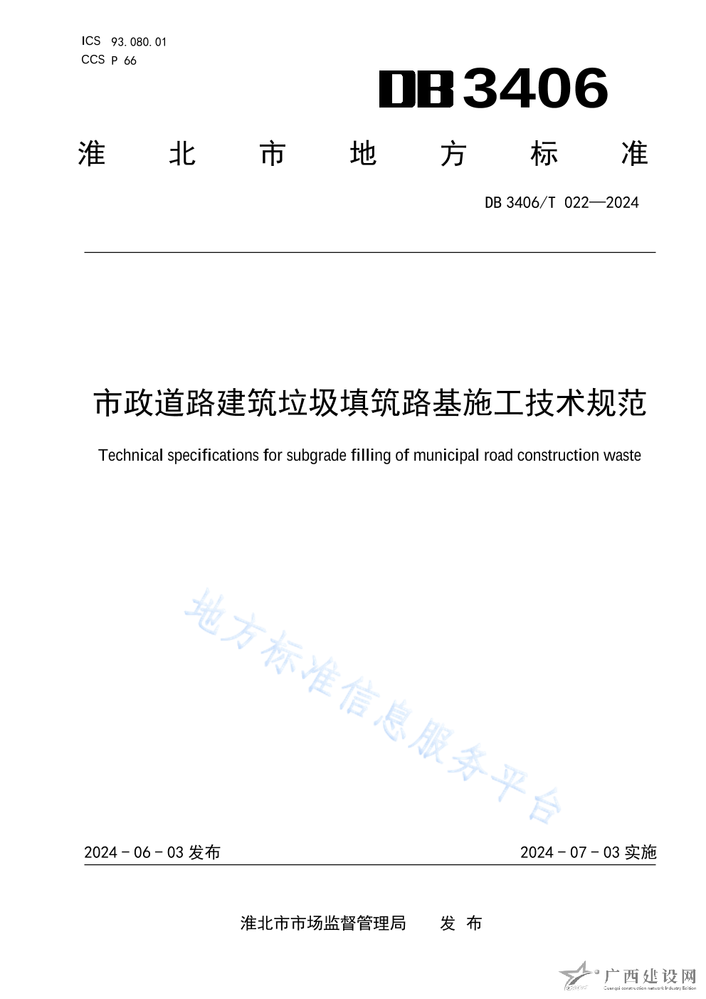 DB 3406T 022-2024市政道路建筑垃圾填筑 路基施工技術規范