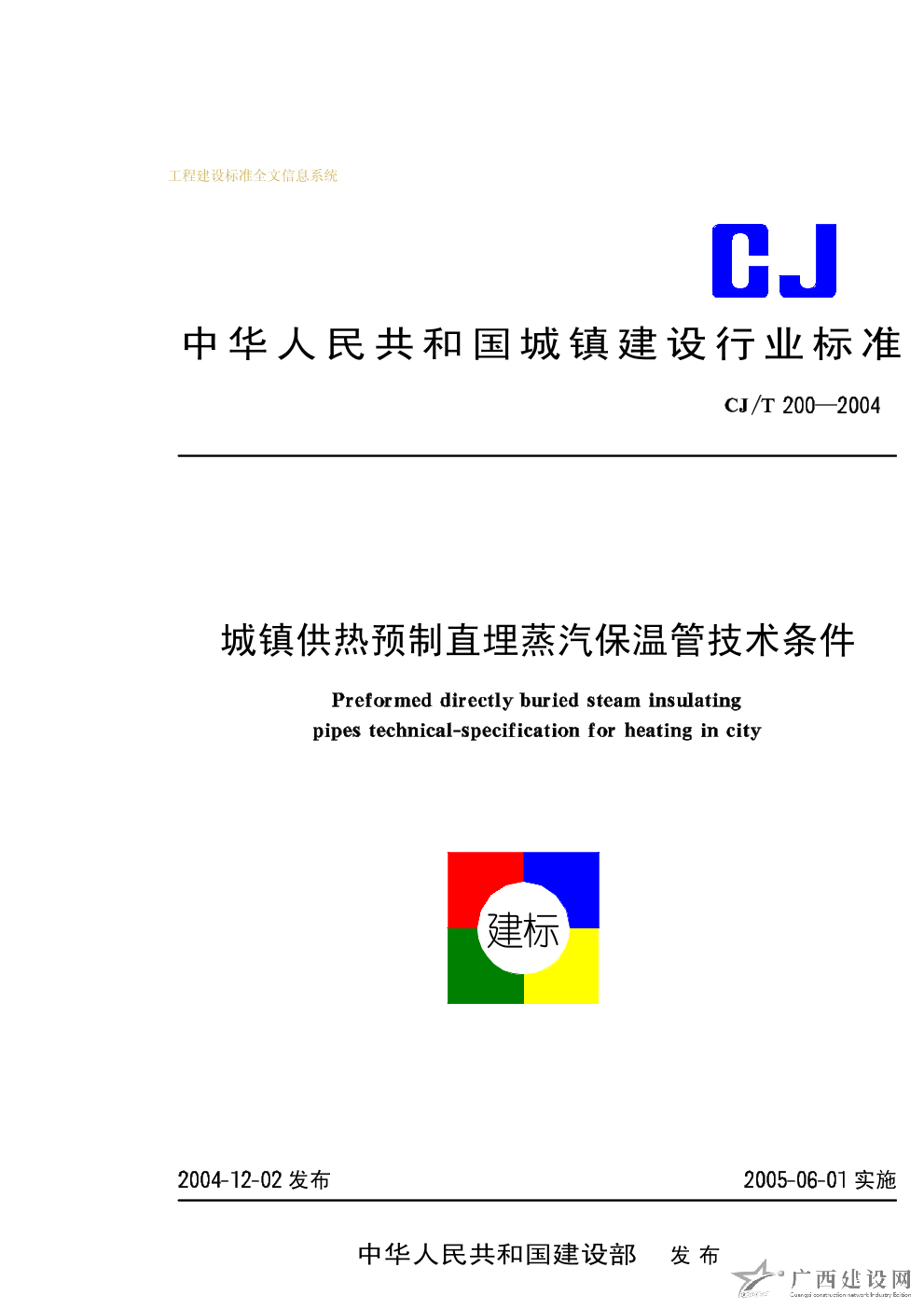 城鎮(zhèn)供熱預(yù)制直埋蒸汽保溫管技術(shù)條件 CJ/T200-2004