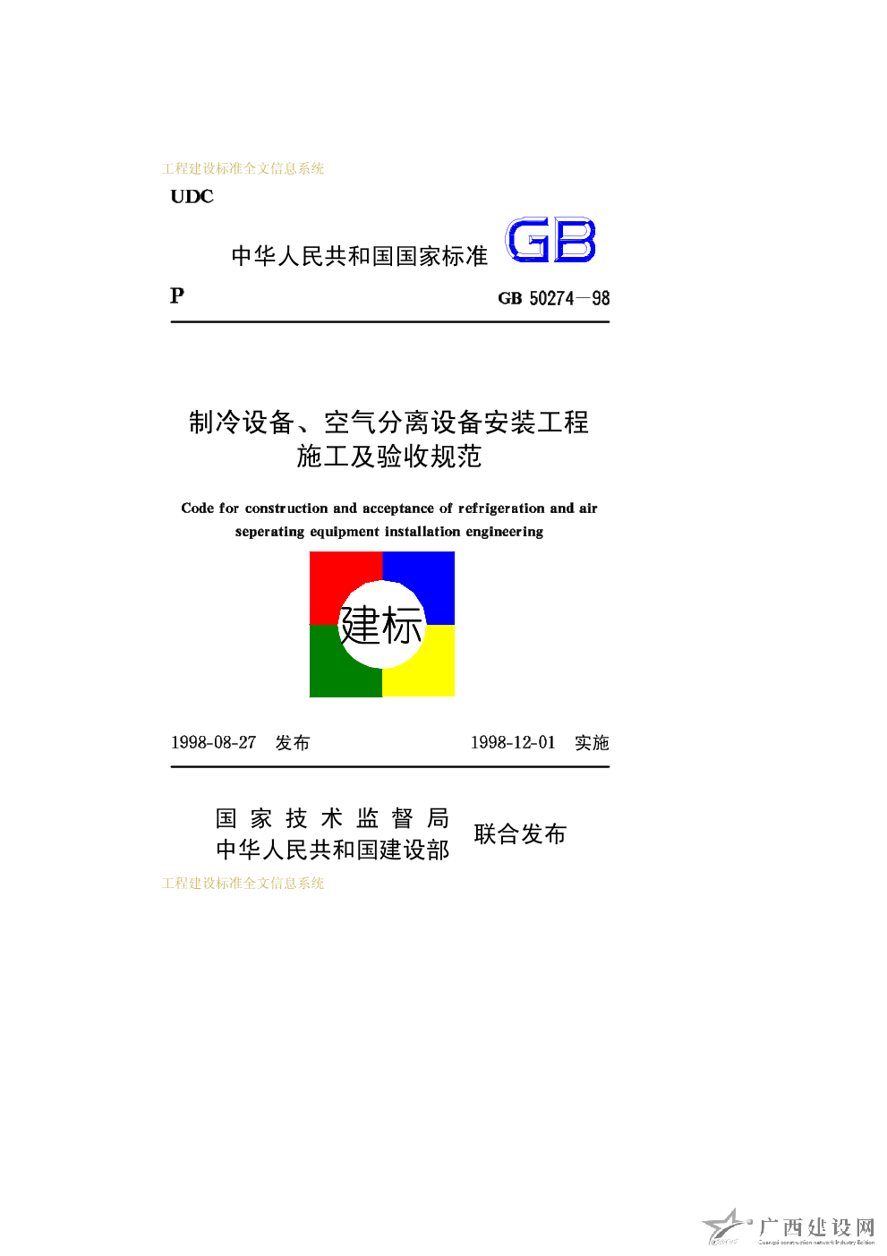 制冷設(shè)備、空氣分離設(shè)備安裝工程施工及驗(yàn)收規(guī)范 GB50274-98