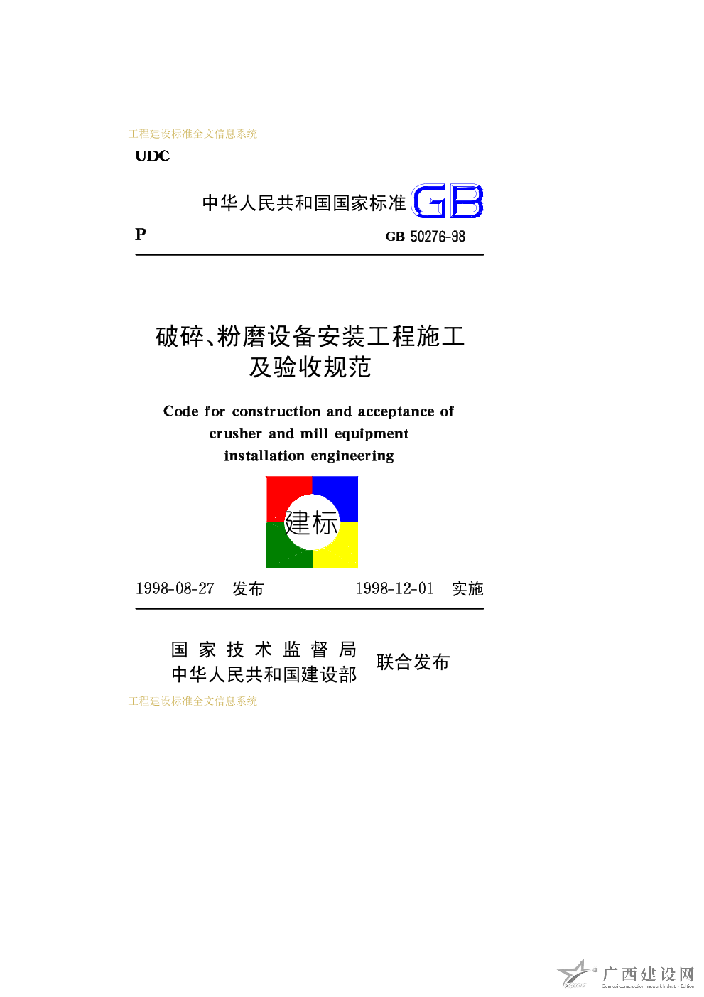 破碎、粉磨設(shè)備安裝工程施工及驗(yàn)收規(guī)范 GB50276-98