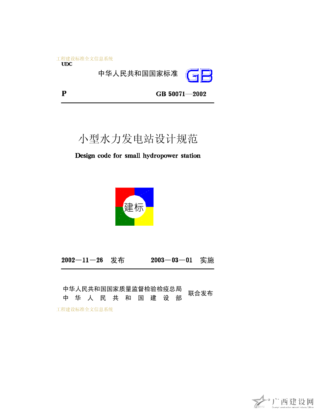 小型水力發(fā)電站設(shè)計(jì)規(guī)范 GB50071—2002