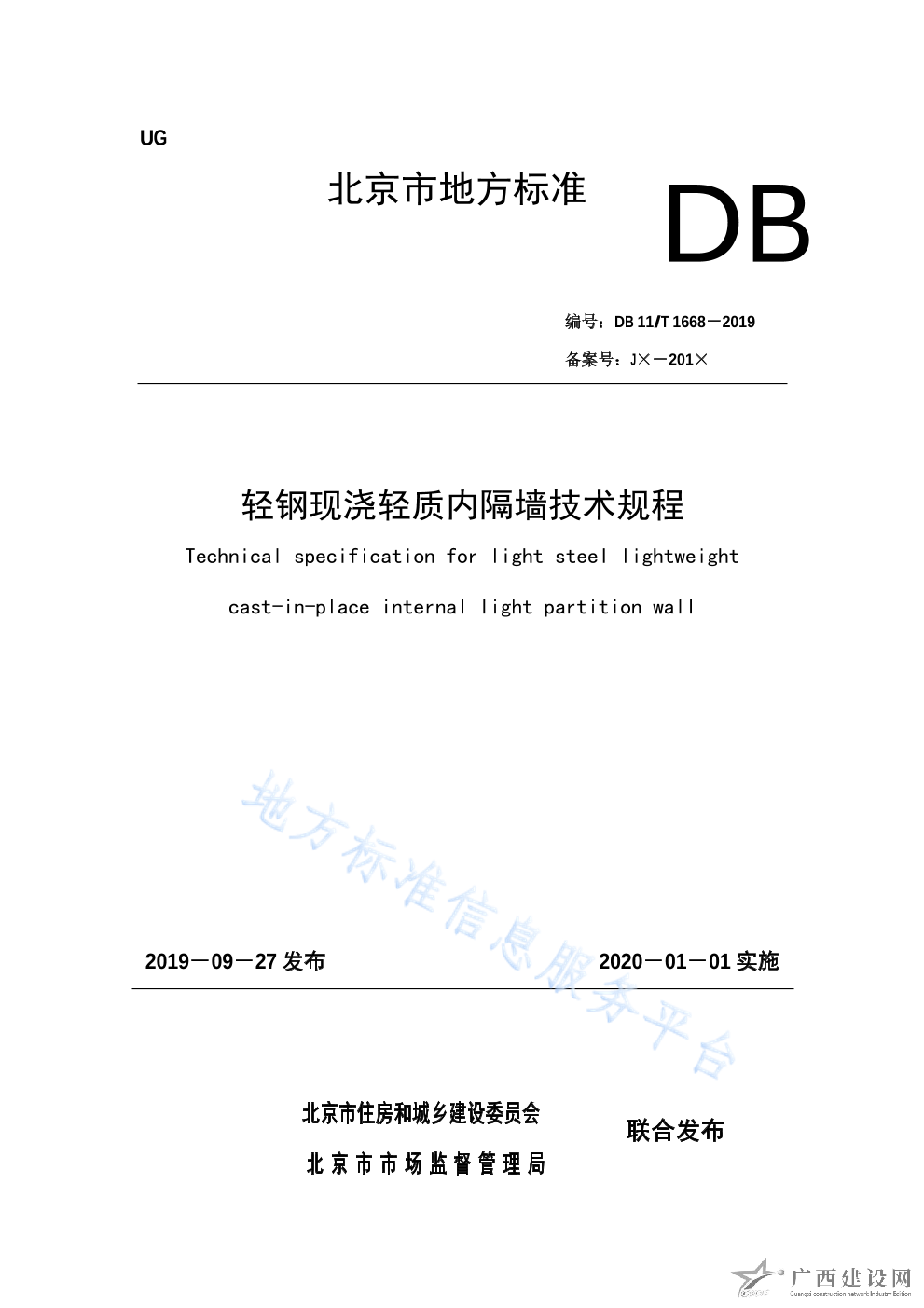 DB11 T+1668-2019輕鋼現澆輕質內隔墻技術規程