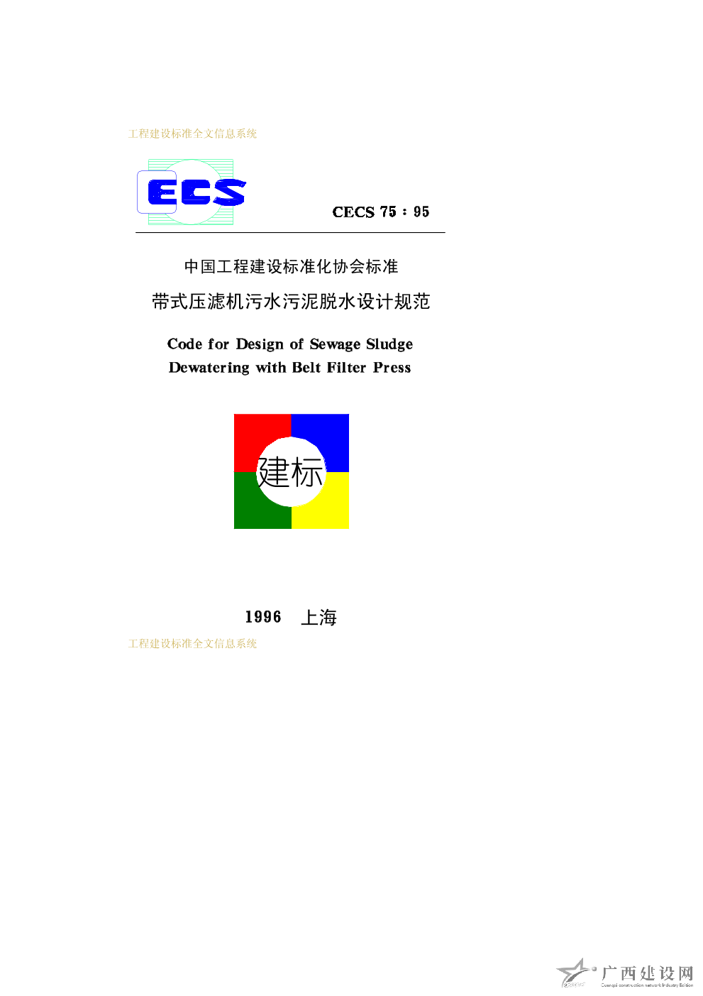 帶式壓濾機污水污泥脫水設(shè)計規(guī)范 CECS75∶95